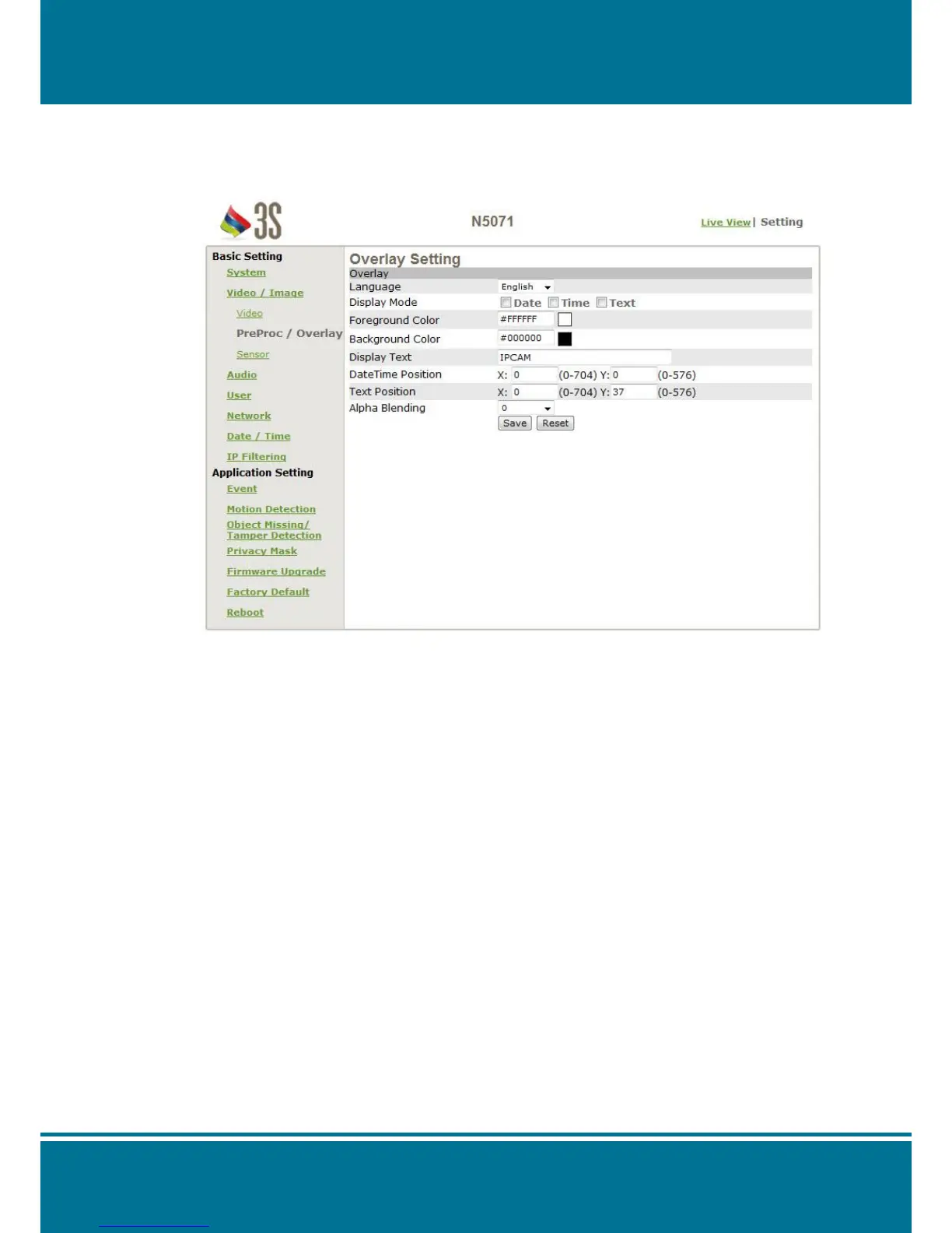 Alpha Blending: Set the Alpha Blending for the transparency of the overlay from