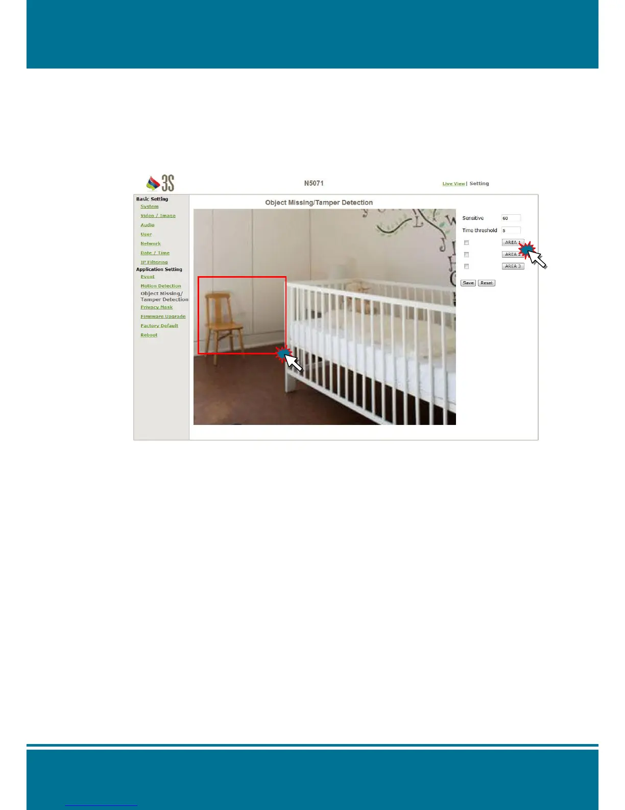 There are 3 frames available for setting: Area 1, Area 2 and Area 3.
