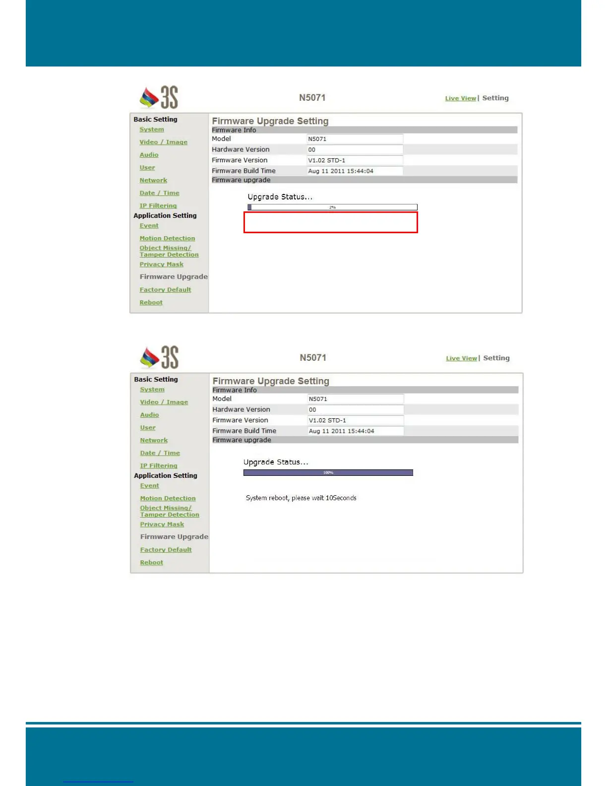 6. N5071 Speed Dome Network Camera reboots automatically after the firmware has