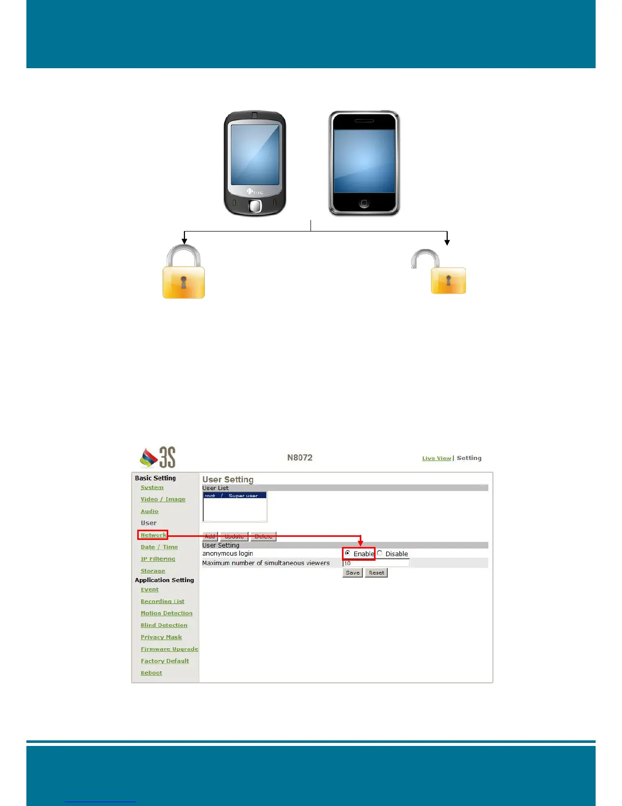 Click the “Enable“ from anonymous login of User Setting