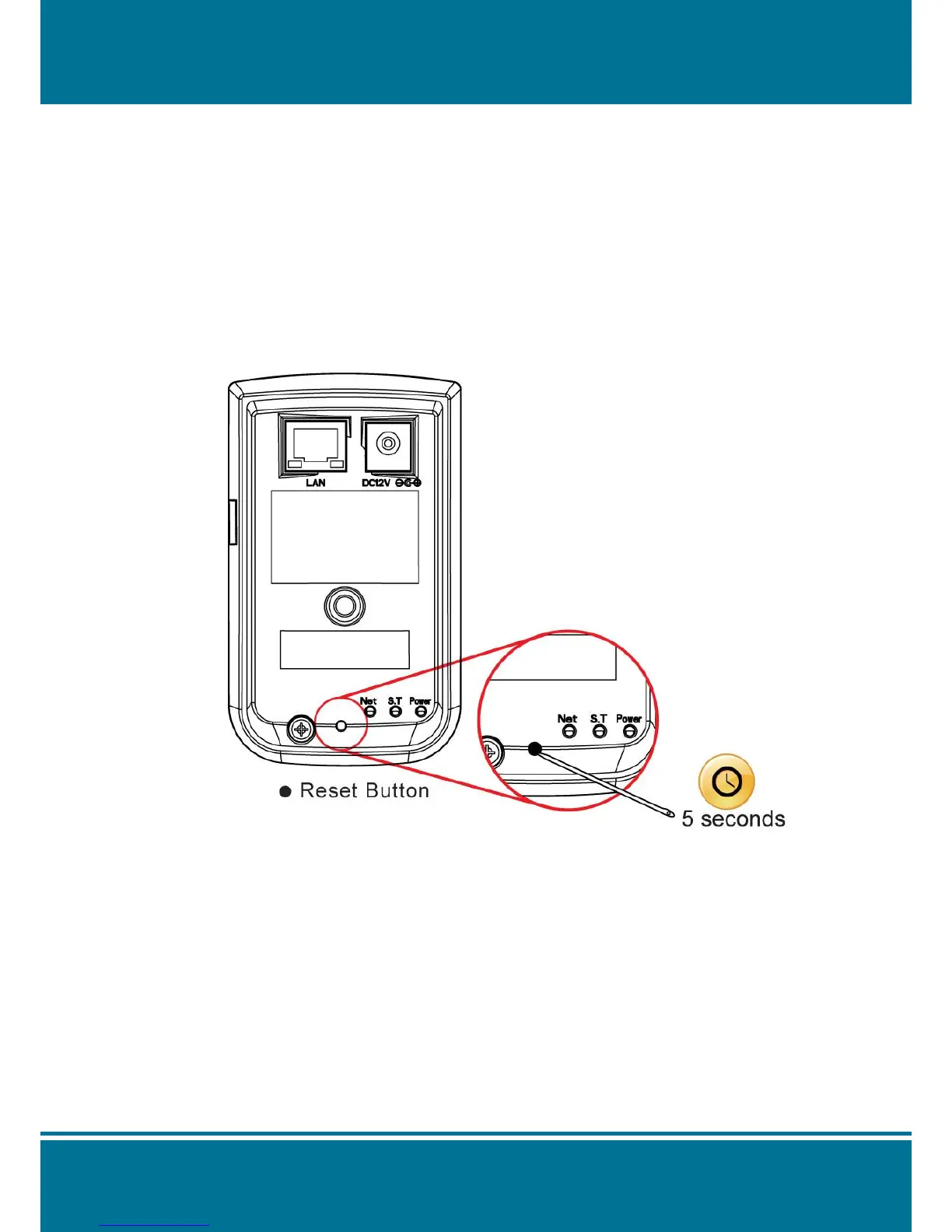 Press and release the reset button with a paper clip or thin object for 5 seconds