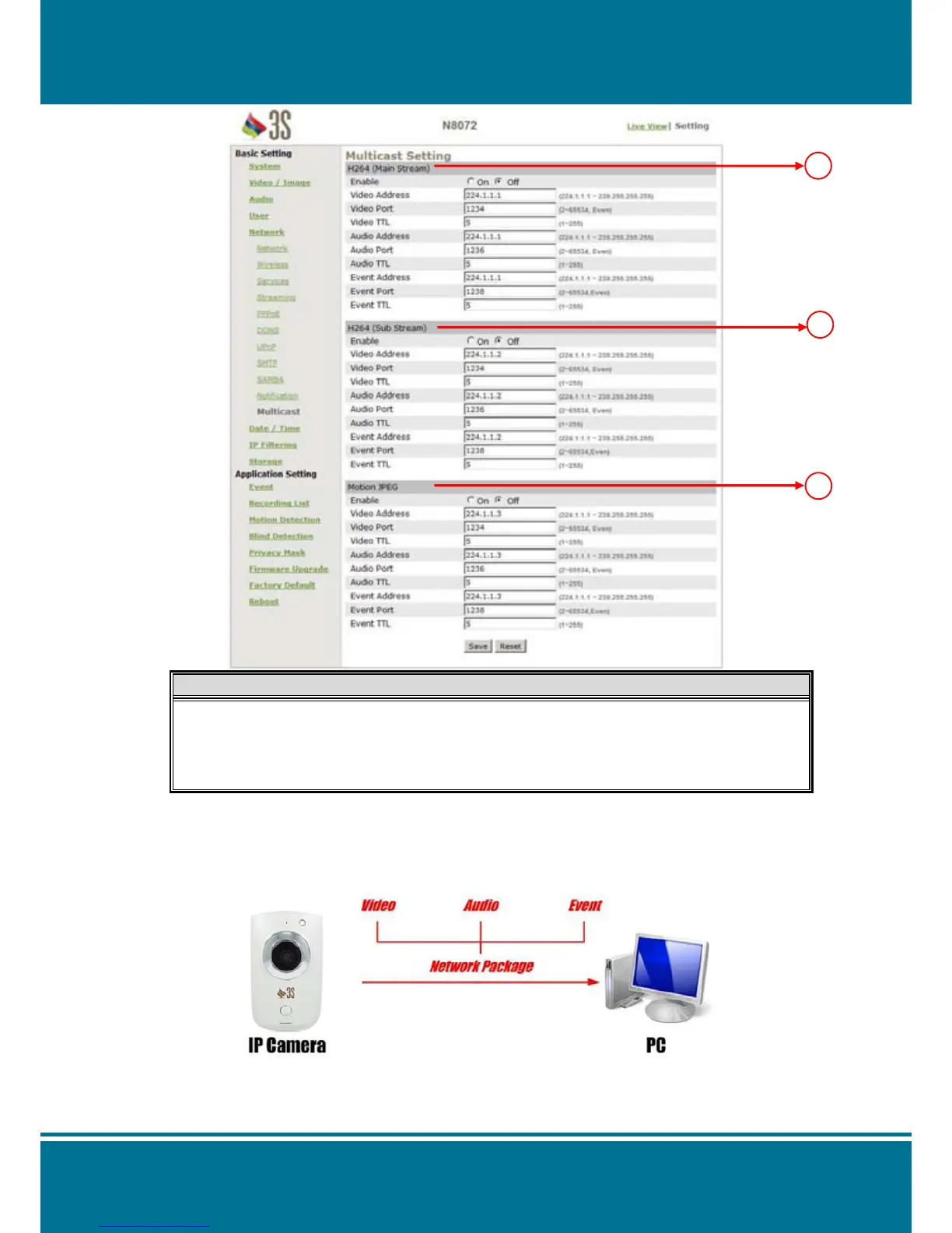 Display the multicast setting of H264 (Sub)