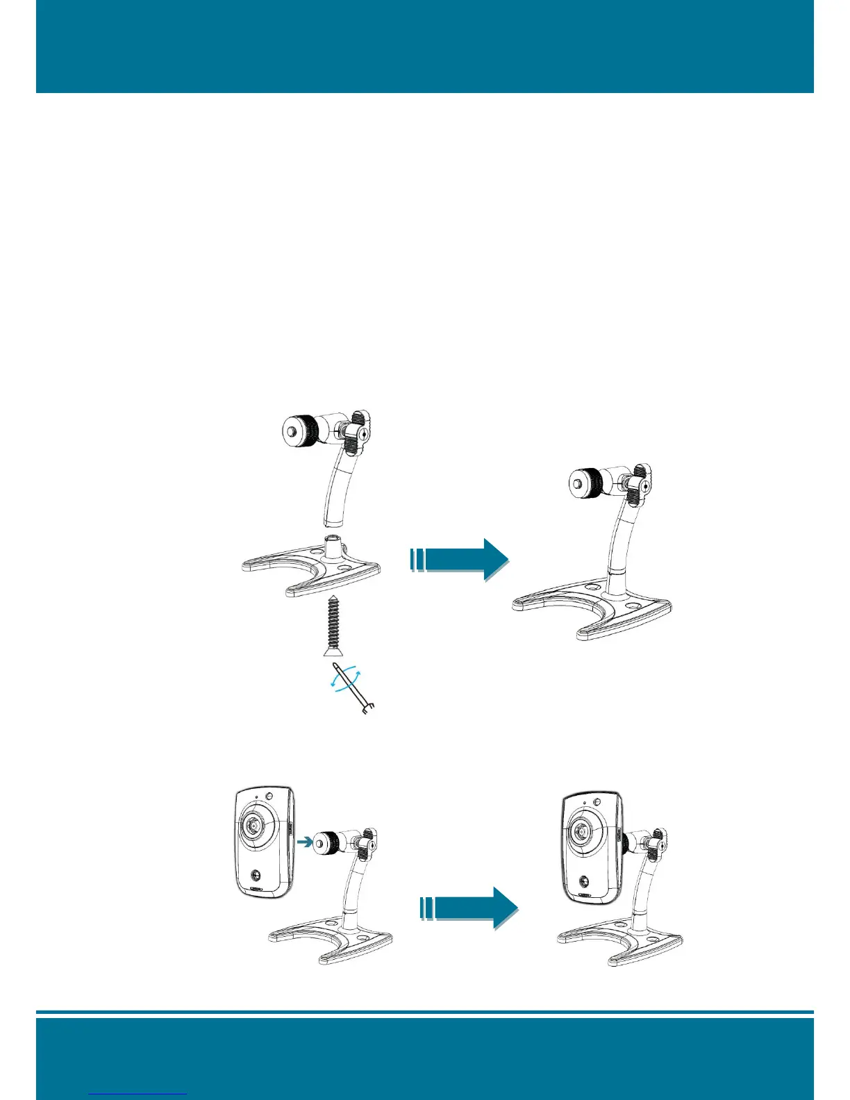 2. Connecting the N8072 Cube Network Camera to the tripod by turning the N8072