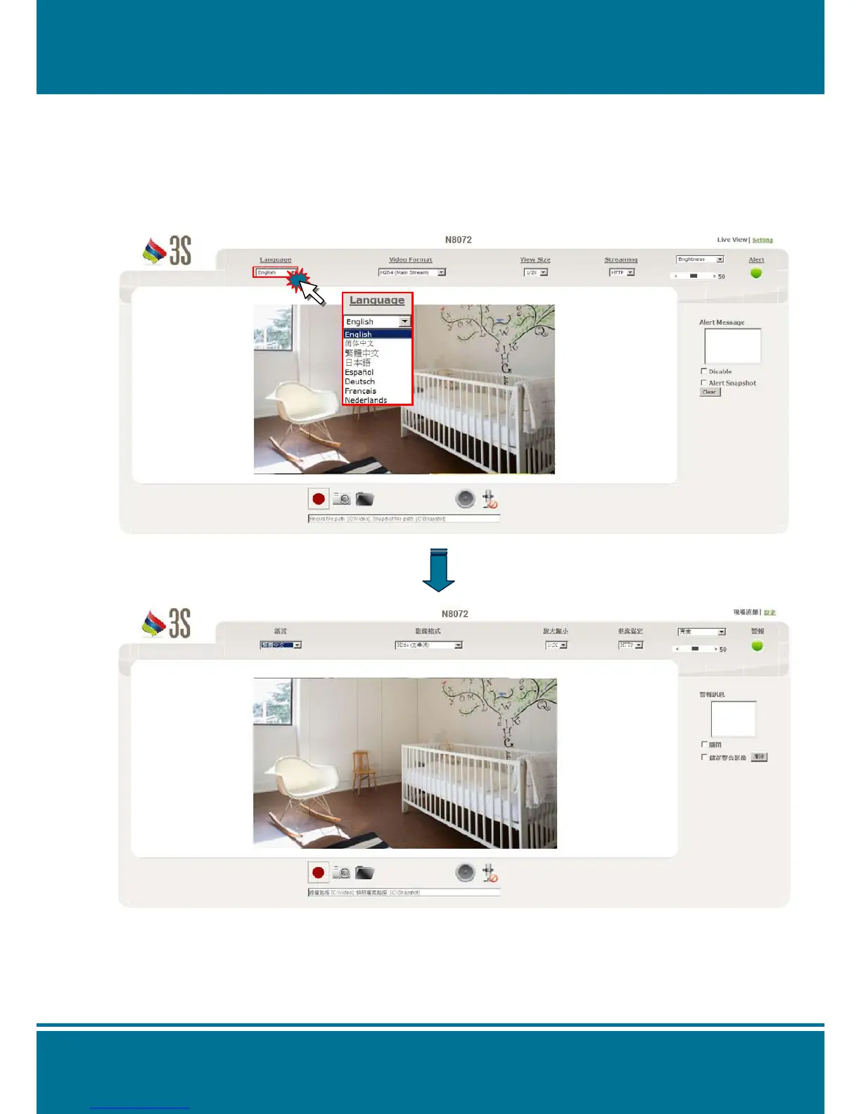 Click the pull-down menu to select the language for web browser from English, 简体中文