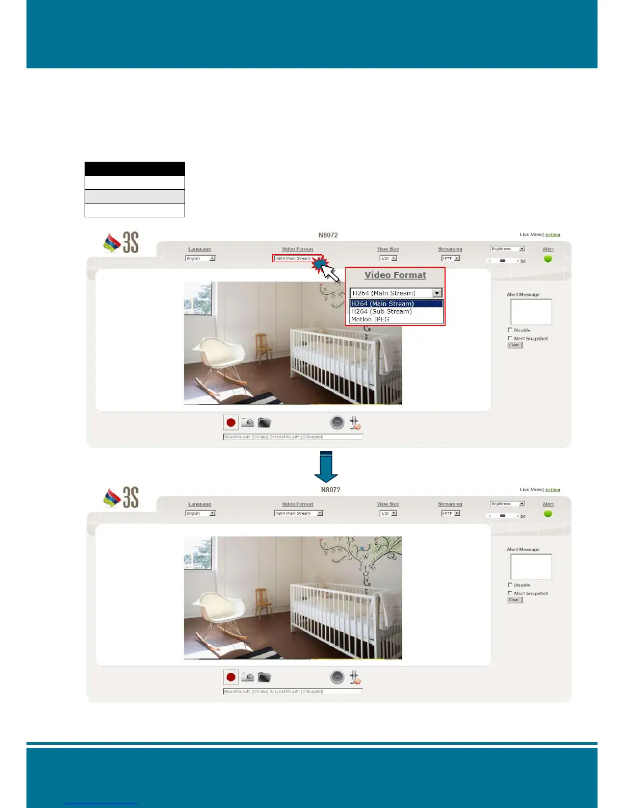 Click the pull-down menu to select the video format from H264 (Main Stream), H264 (Sub