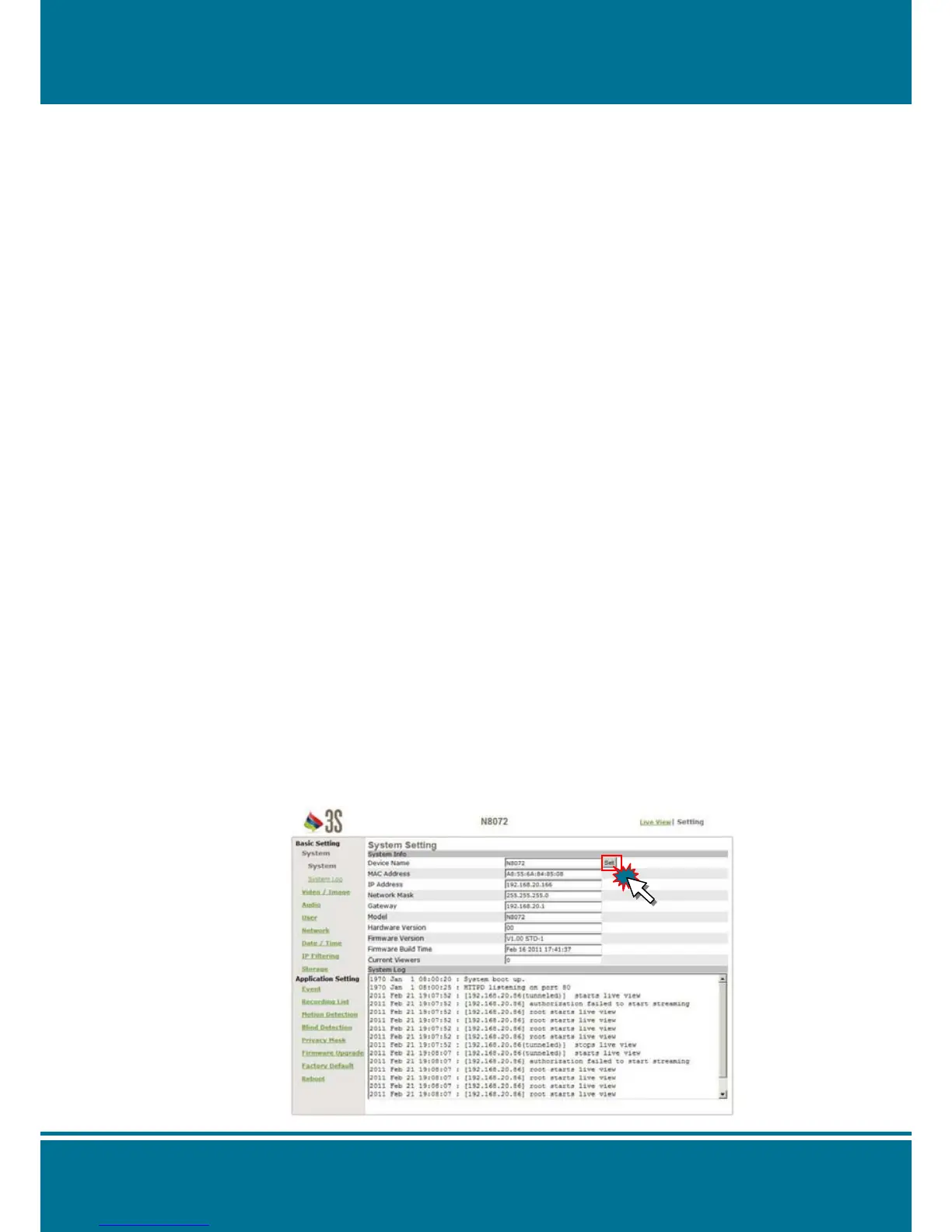 The Basic Setting menu lets you view the Basic Setting for N8072 Cube Network Camera and