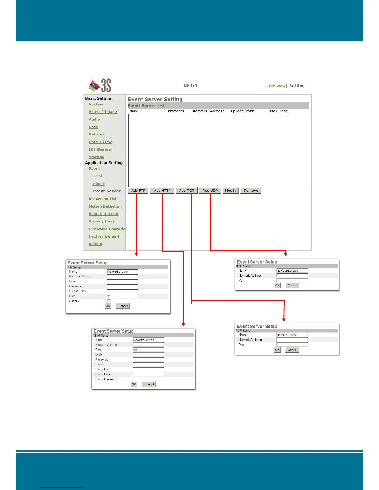 Please make a setting for servers in the Event Server Setting by following setting: