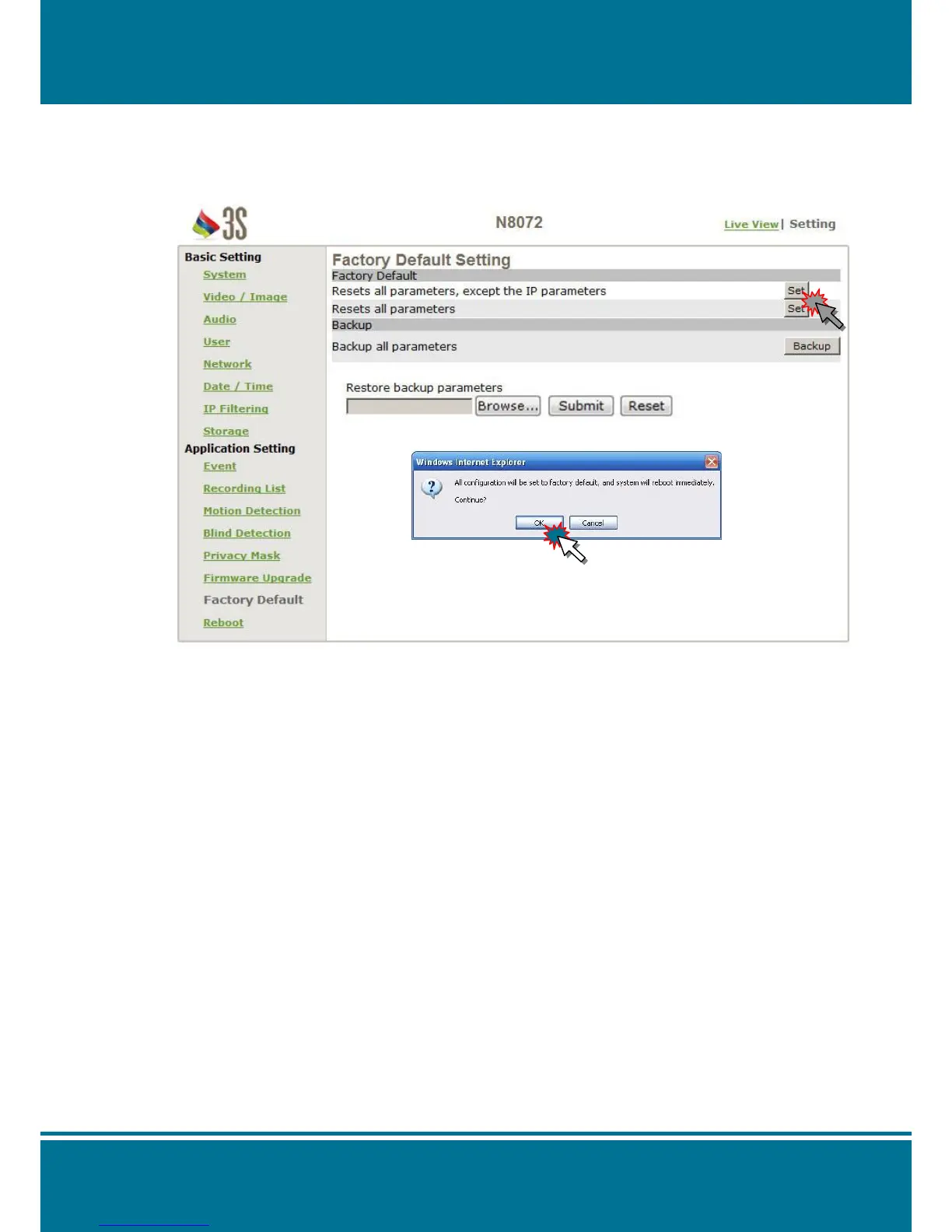 You can use this setting to reset N8072 Cube Network Camera to the factory default