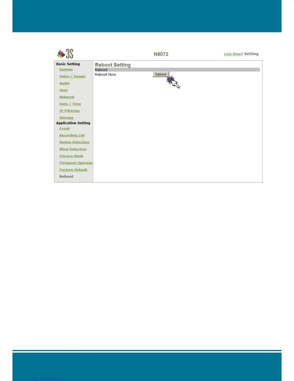 Use the setting to reboot the camera automatically by click Reboot.