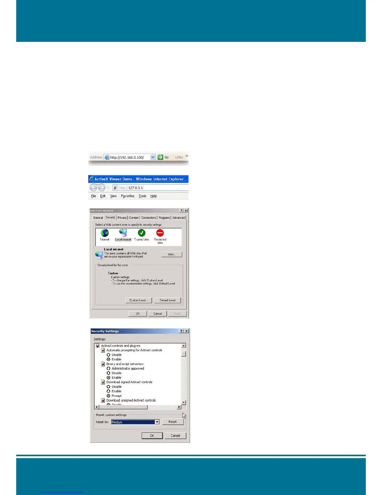 4. Make sure the security setting is Medium, and the commonly used default security level.
