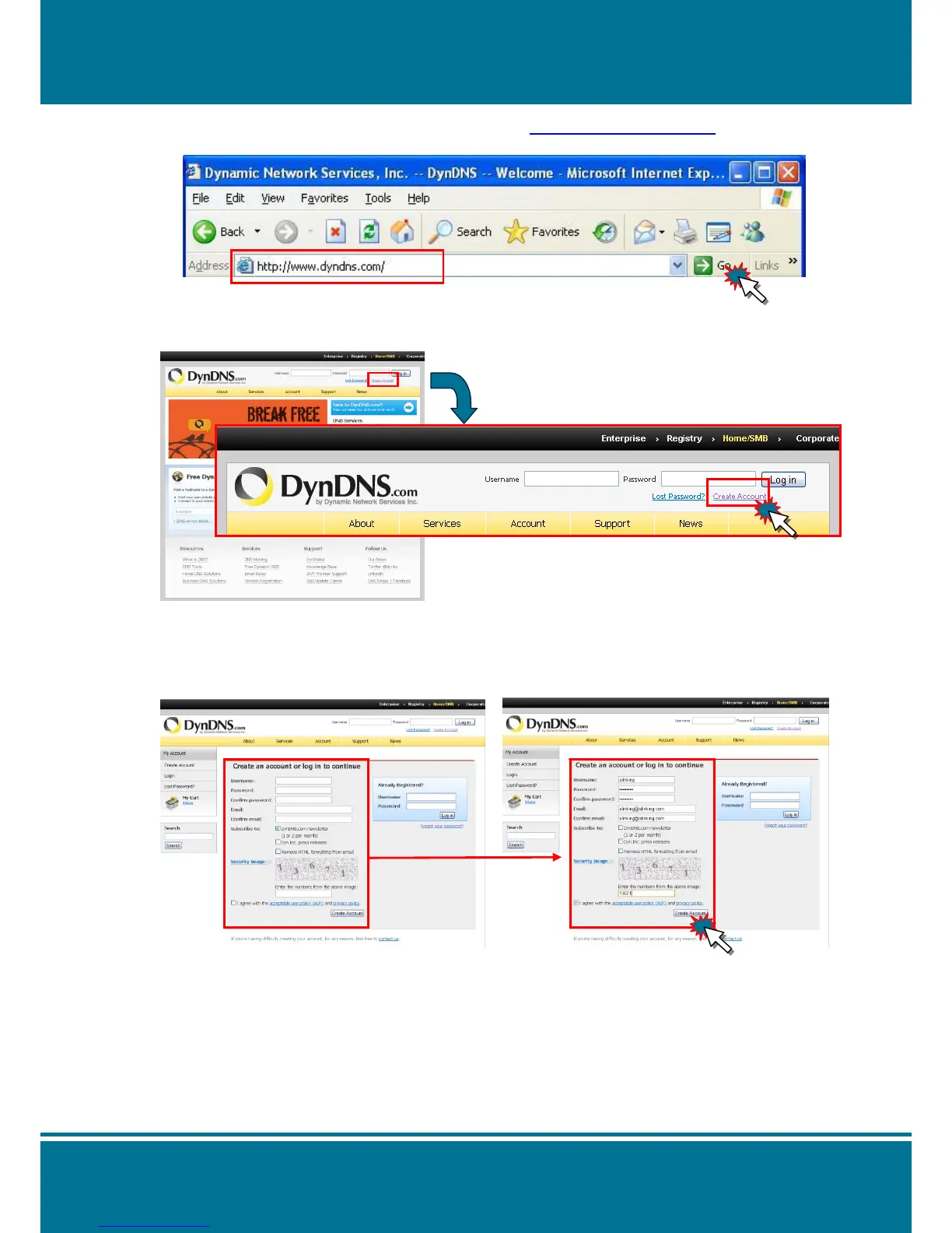 1. Please enter the website address of “DynDNS” (http://www.dyndns.com/) through Browser.
