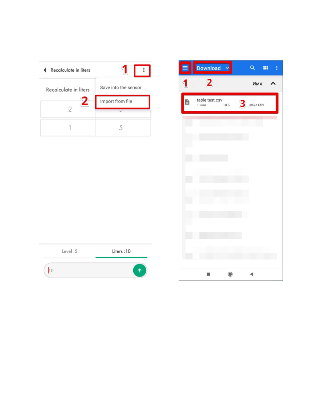 dots icon (Fig. 84, 1) and then tap on the Import from file option (Fig. 84, 2. After that, find the file