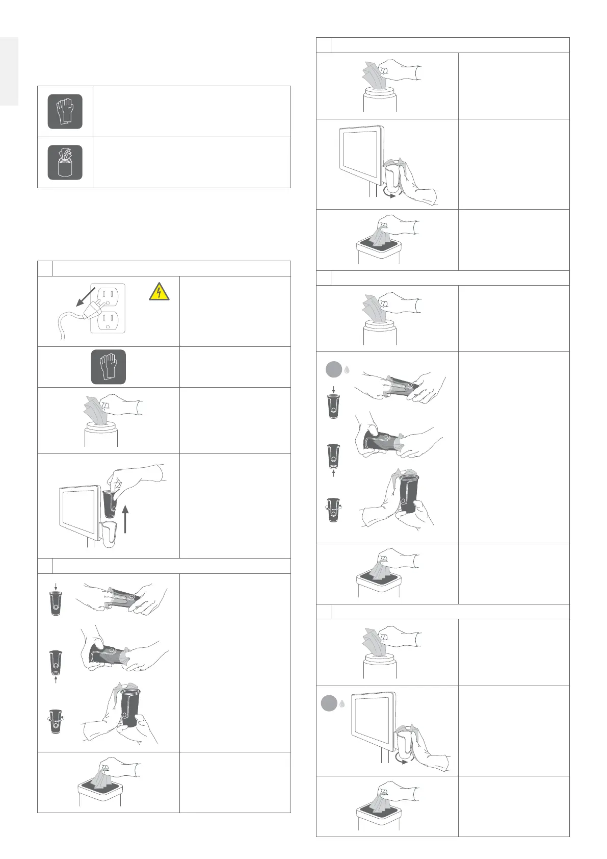 Os seguintes acessórios e materiais são recomendados para uso na limpeza e desinfecção.