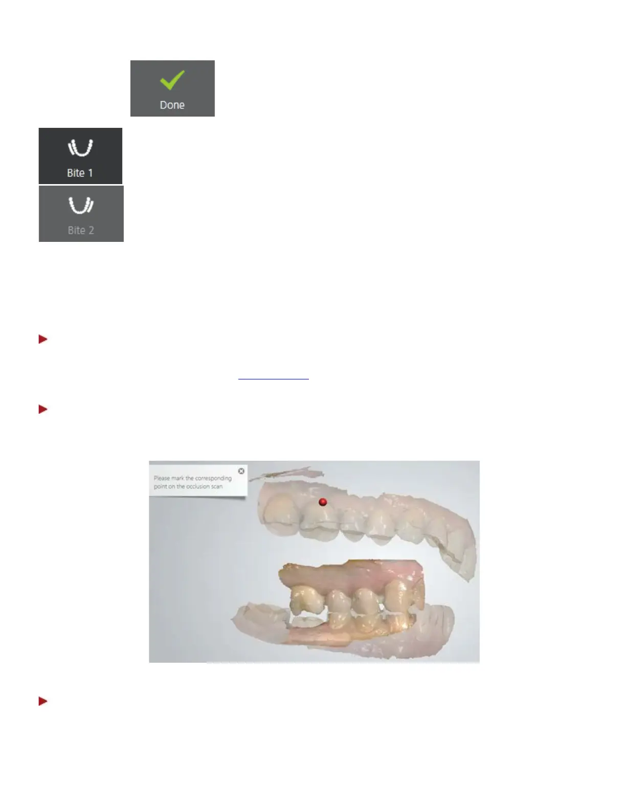 Follow the instructions on the screen to place marker points on the upper/lower jaws and occlusion scans.