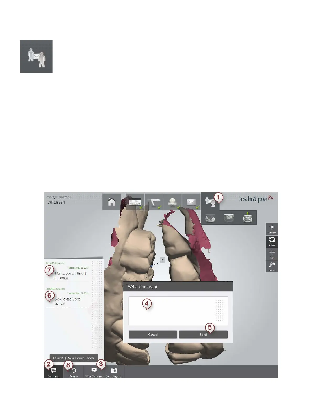 (1) Open the 3Shape Communicate page. View the scan model. If the lab uploaded a new