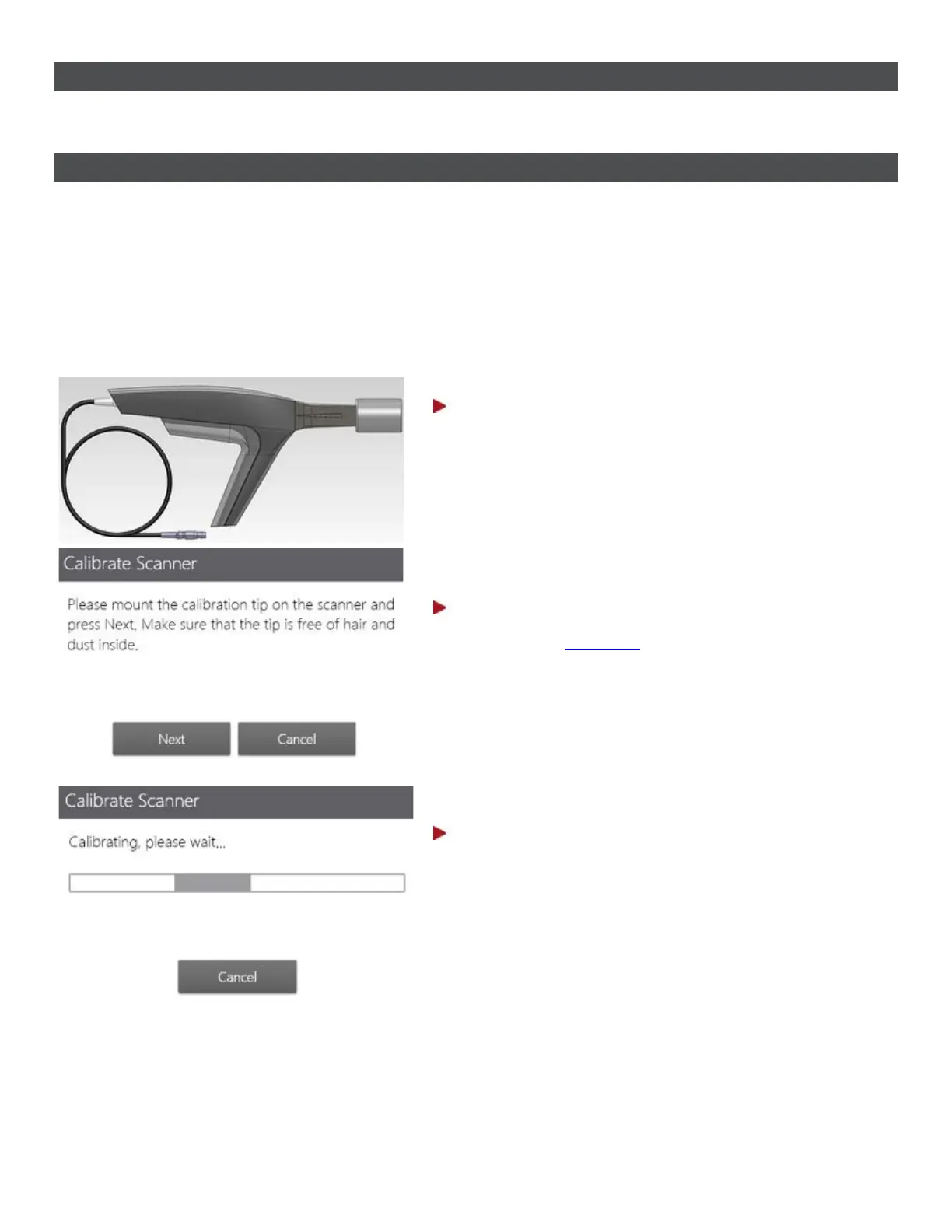 • Calibrate the scanner before using it for the first time and every eight days during regular use.