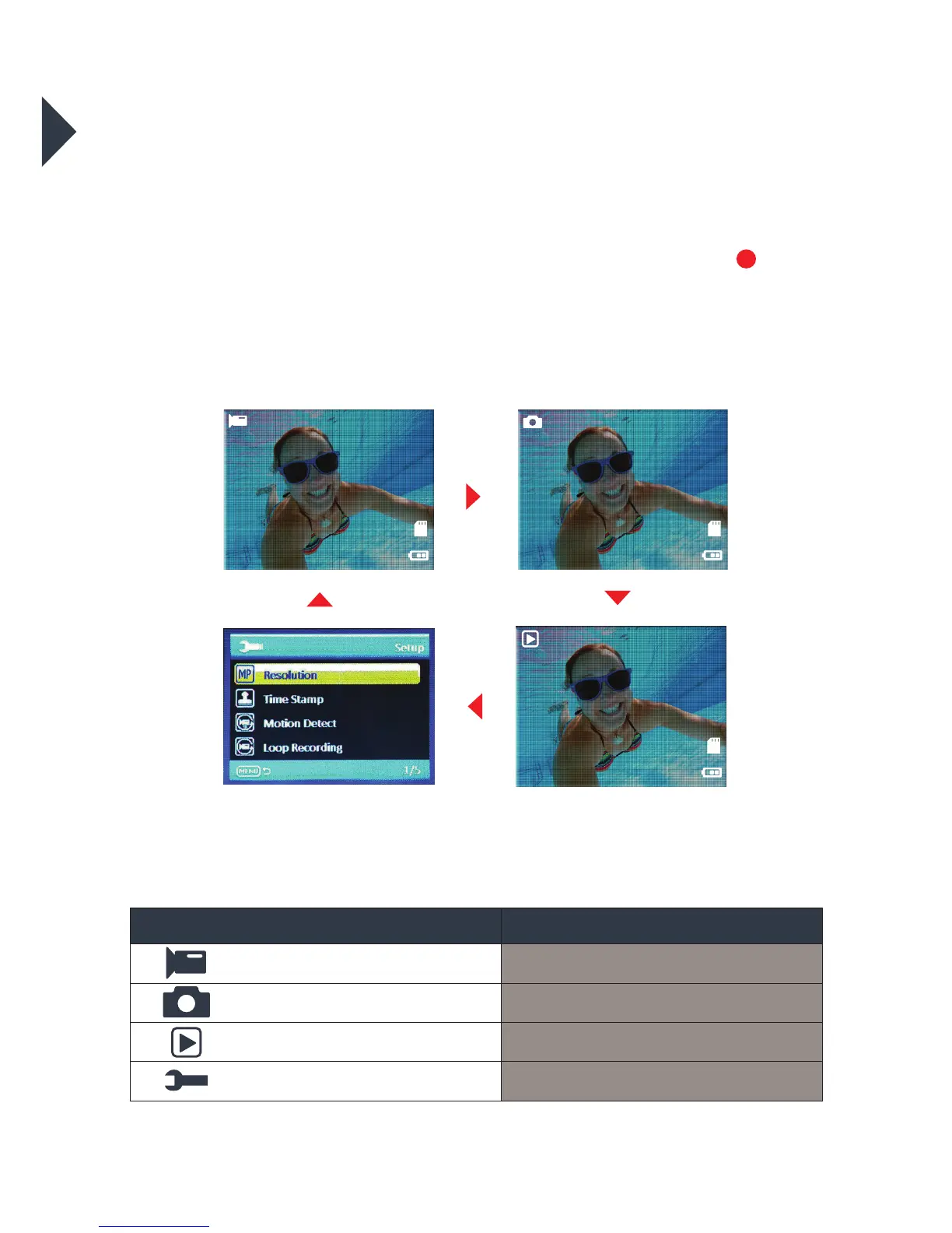 Turn camera ON and repeatedly press the Power/Mode Buon