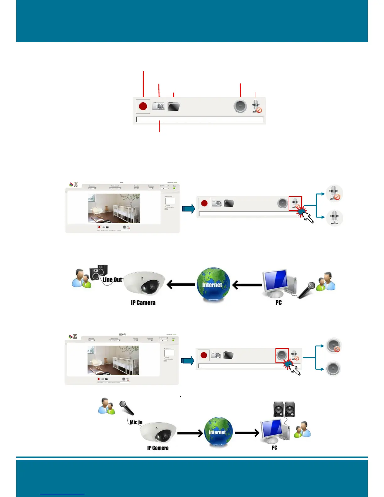 Transmit the voice into the N9071 Mini Dome Network Camera by using the PC’s