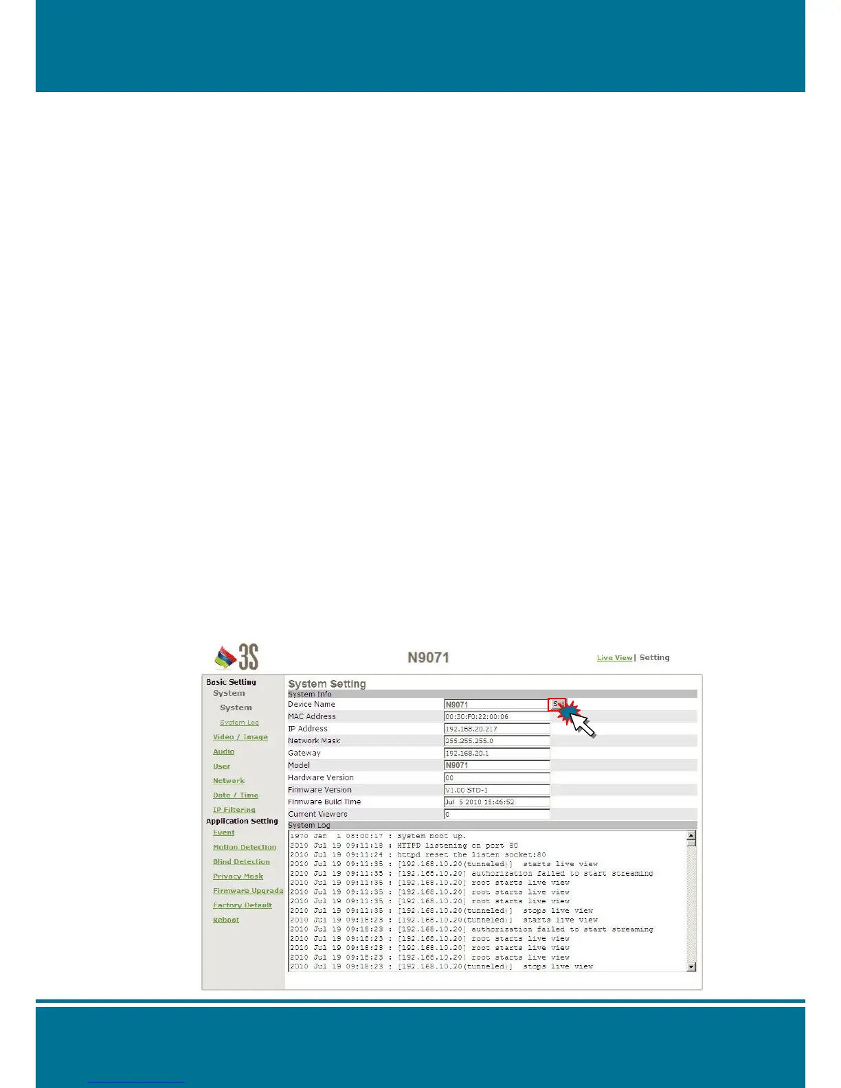 Device Name: Give the name of your camera here. Complete the setting by Click Set.