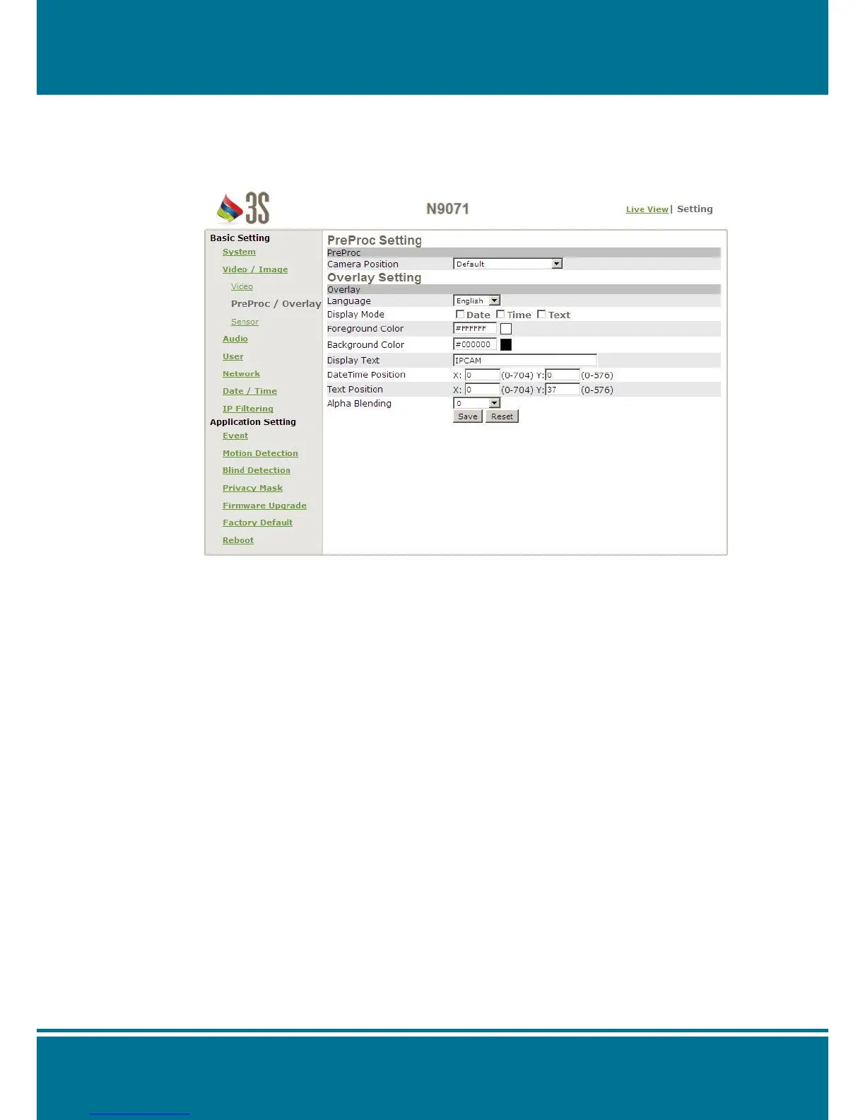 Alpha Blending: Set the Alpha Blending for the transparency of the overlay from