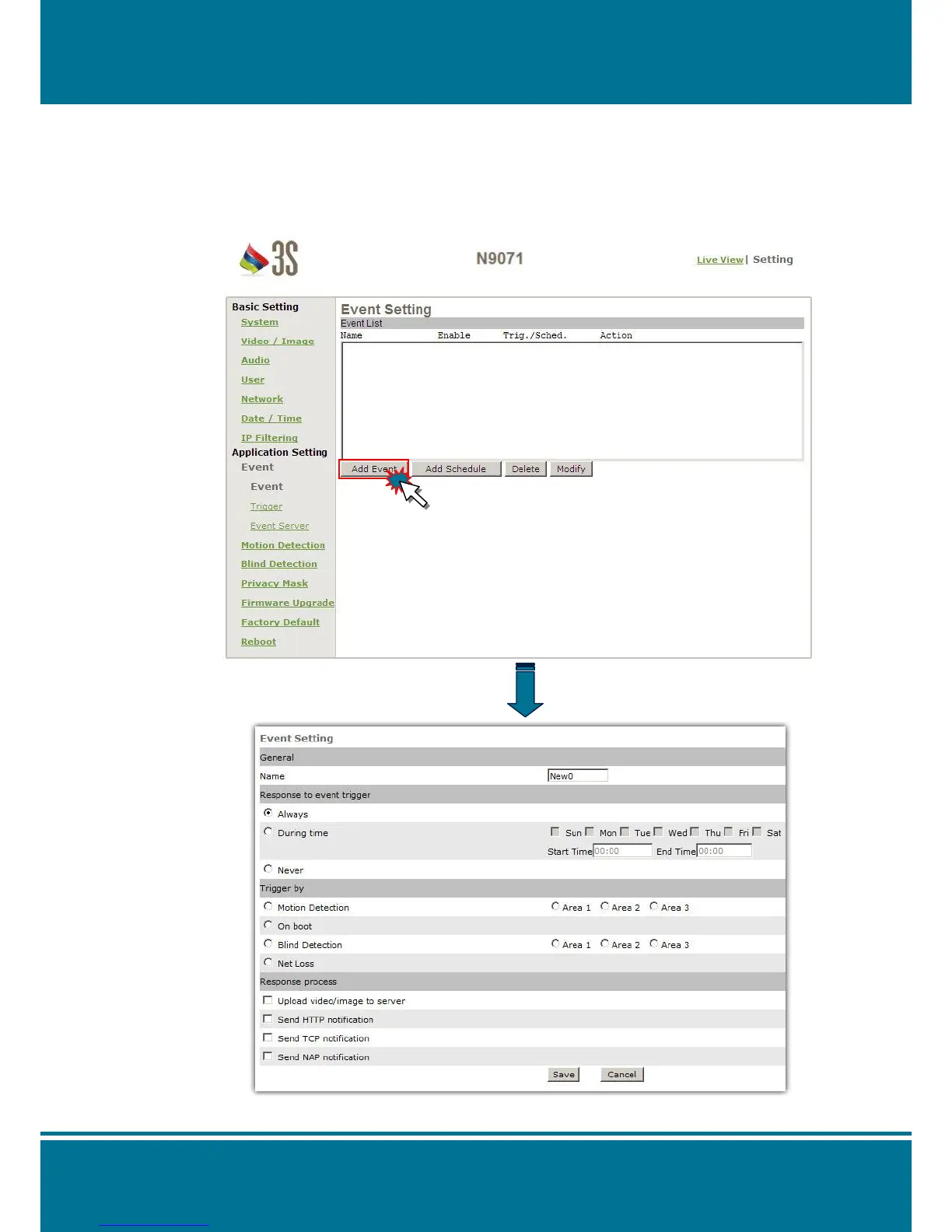 Add Event: Click Add Event to enter the Trigger Even Setting.