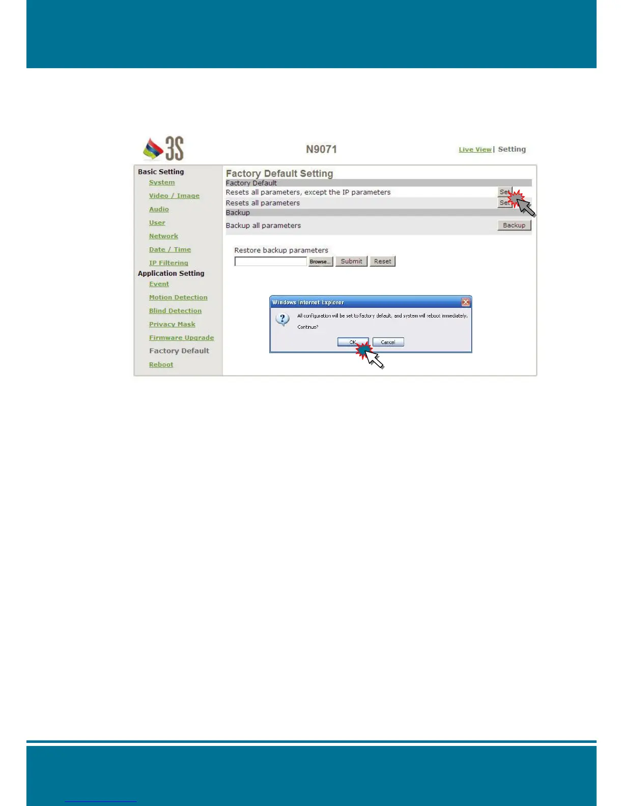 Use this setting to reset the N9071 Mini Dome Network Camera to the factory default