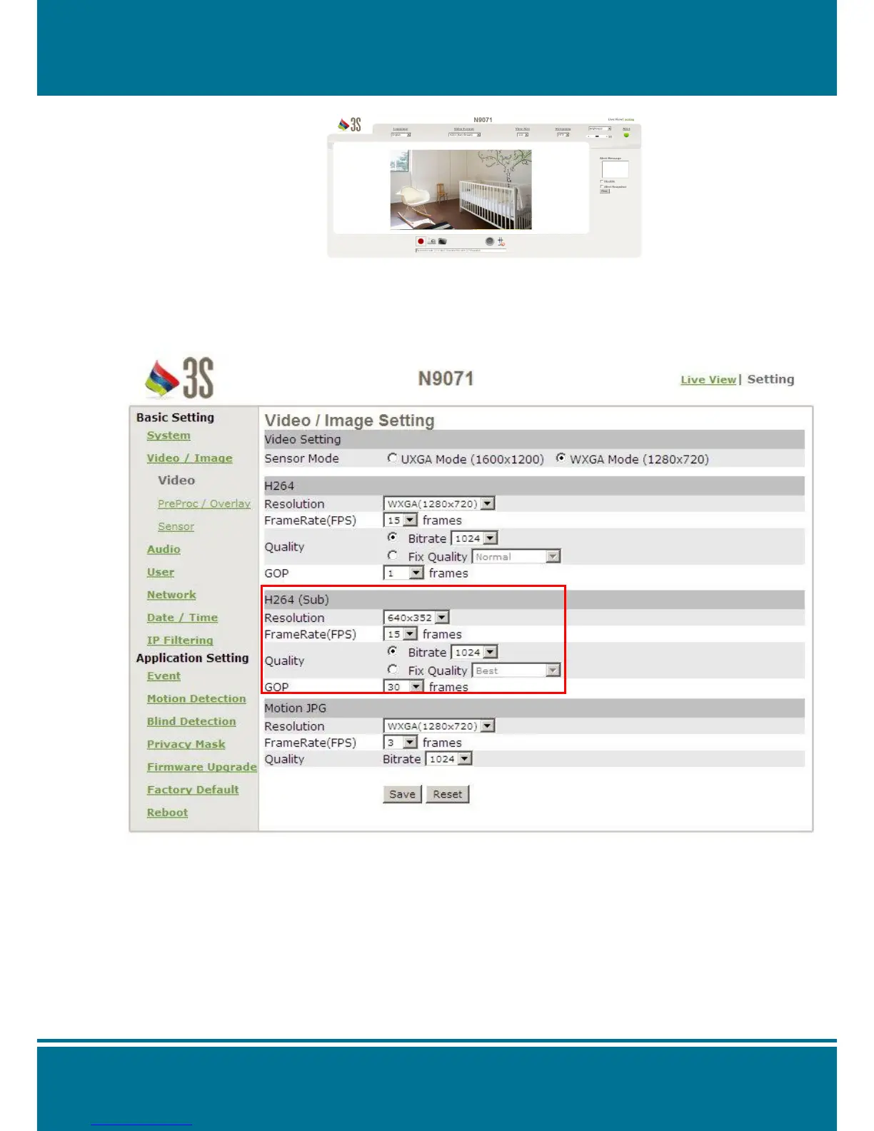 Click Video/Image of Basic Setting Video Set up the sub streaming