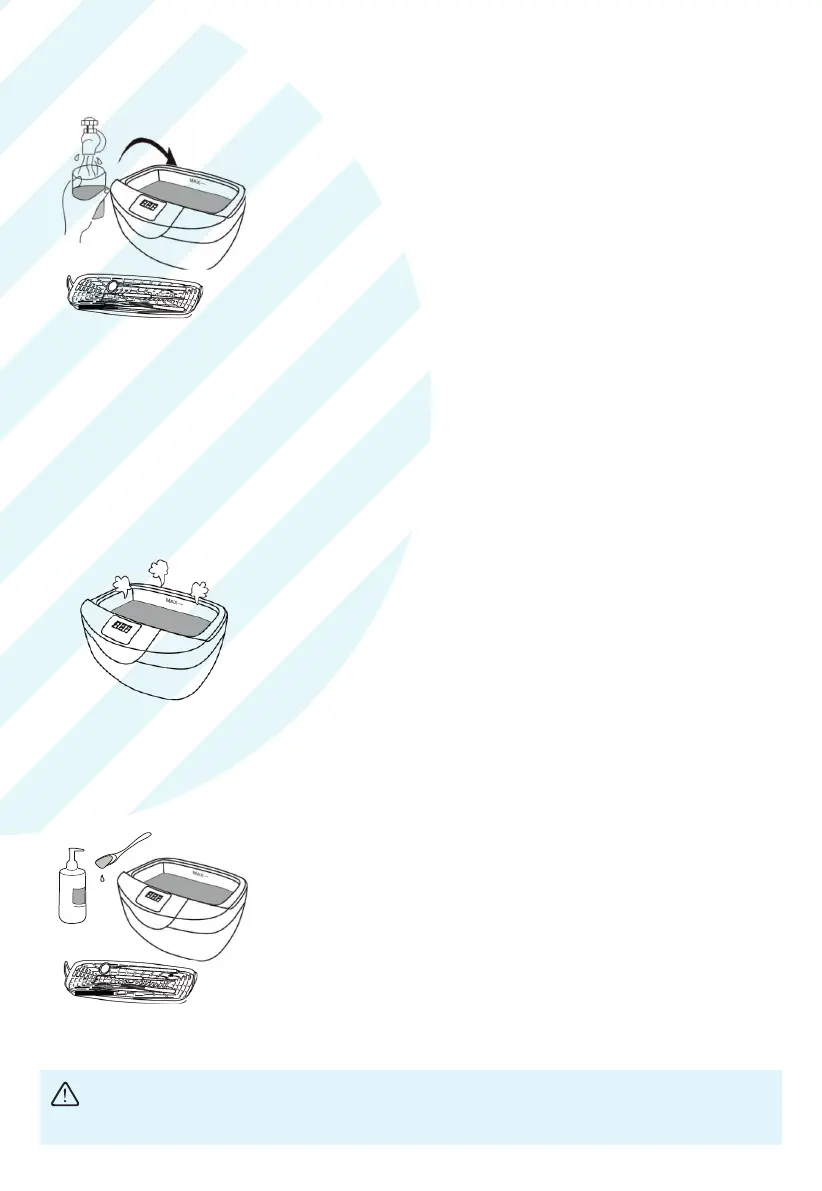 Mantenha o artigo imerso na água, com o produto de limpeza.