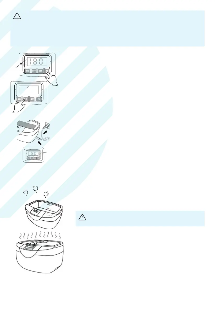 funciona. Se premir «ON», o tempo restante será exibido, mas sem haja onda ultrassónica.