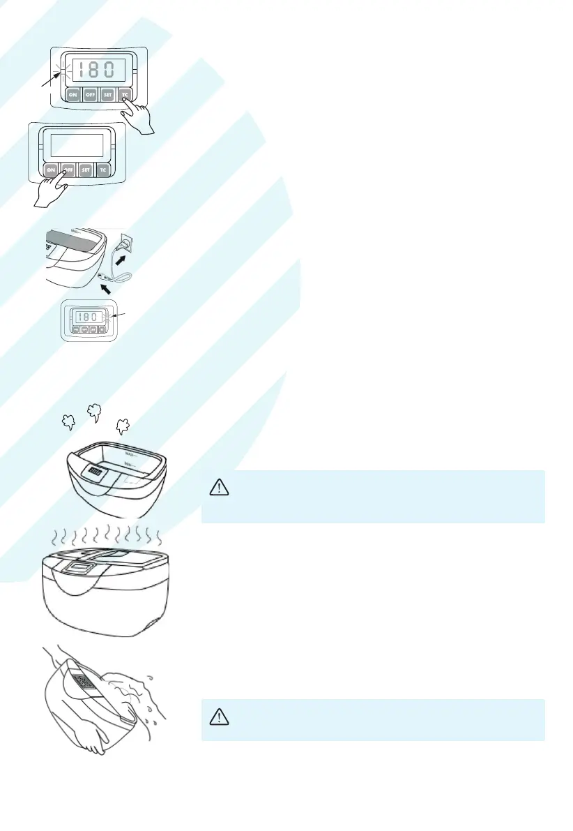 leuchtet. Das Wasser wird auf maximal 65 °C erwärmt. Bitte