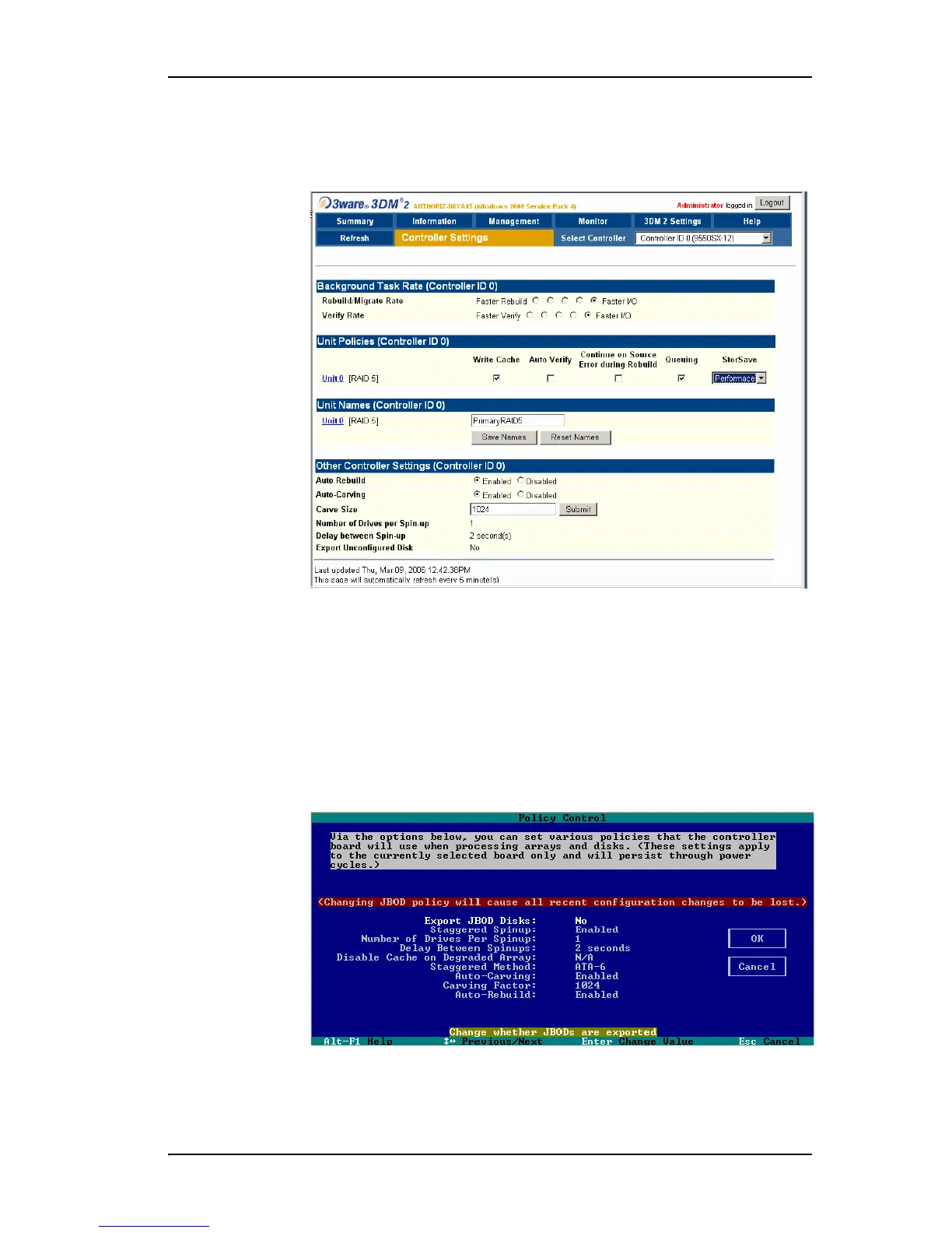 You can also view and change these controller polices in 3BM, as shown in