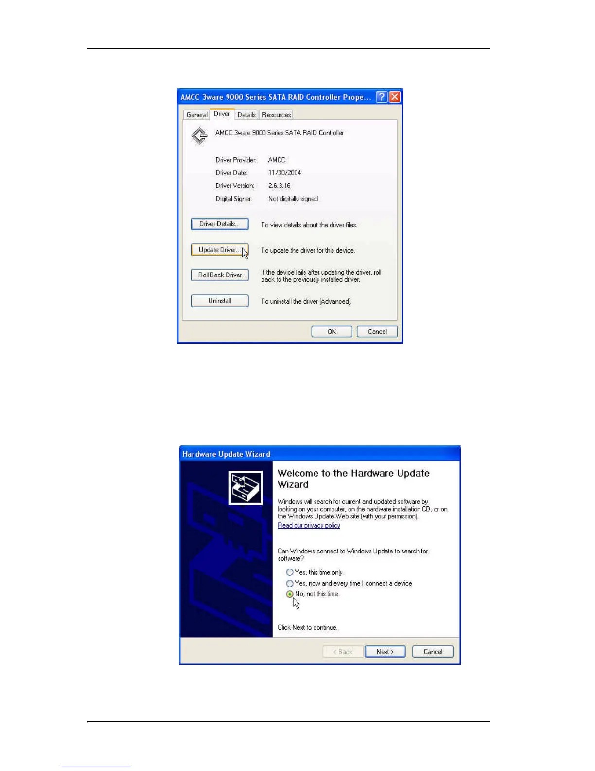 11 If your system has Windows XP Service Pack 2, the first screen asks