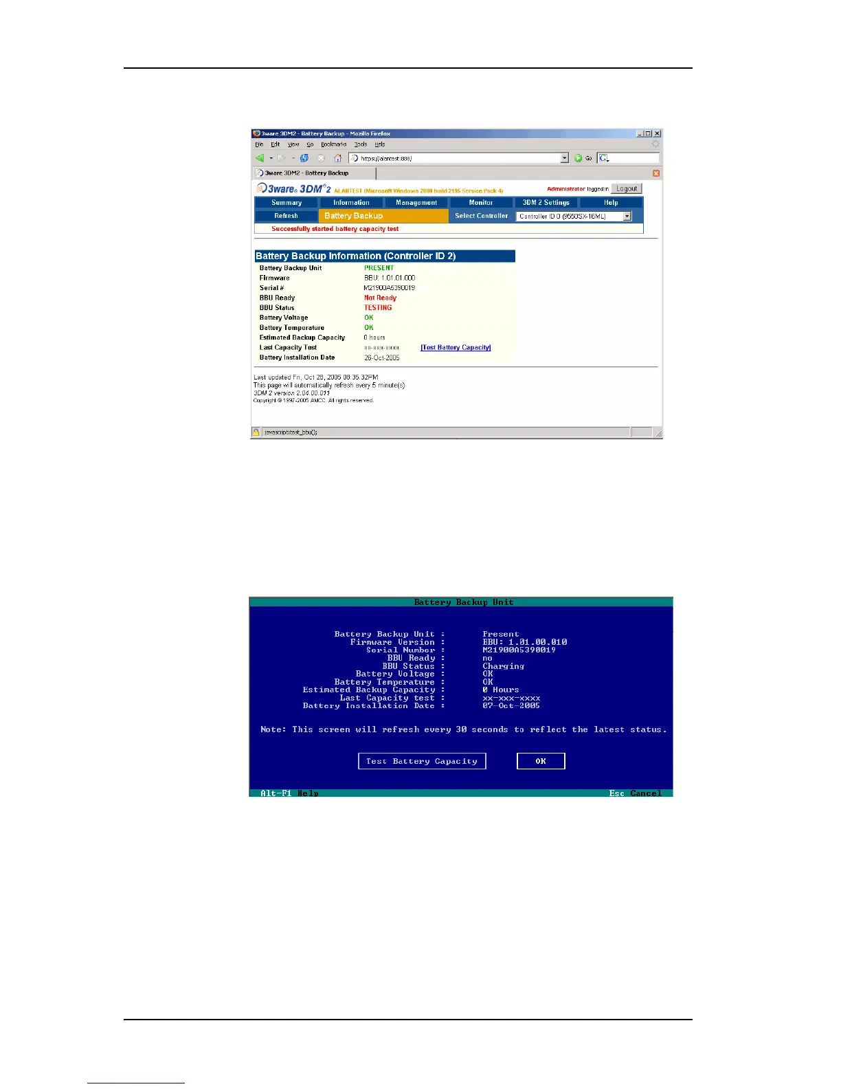 Figure 92. BBU Information Screen While Battery is Testing