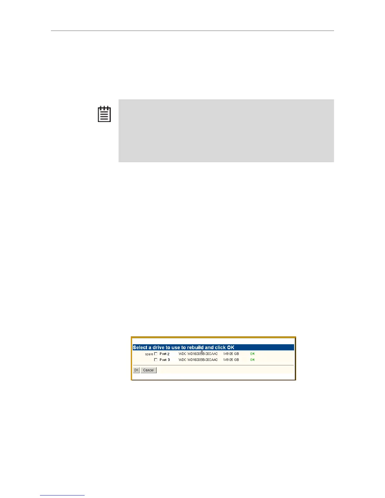 Note: If a rebuild fails, check the Alarms page for the reason. If there was an ECC