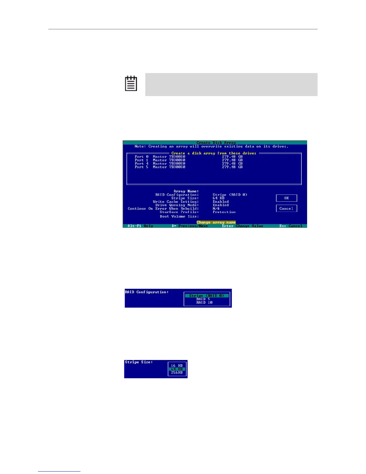 Tab to the field Stripe Size and select the desired striping size (16, 64, or