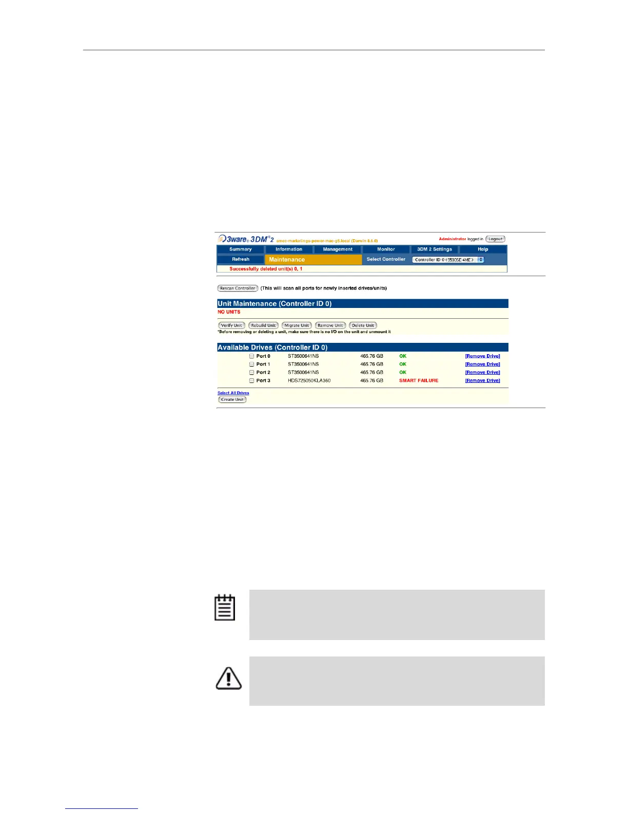 Note: If you want to delete an incomplete drive or unusable unit, or a