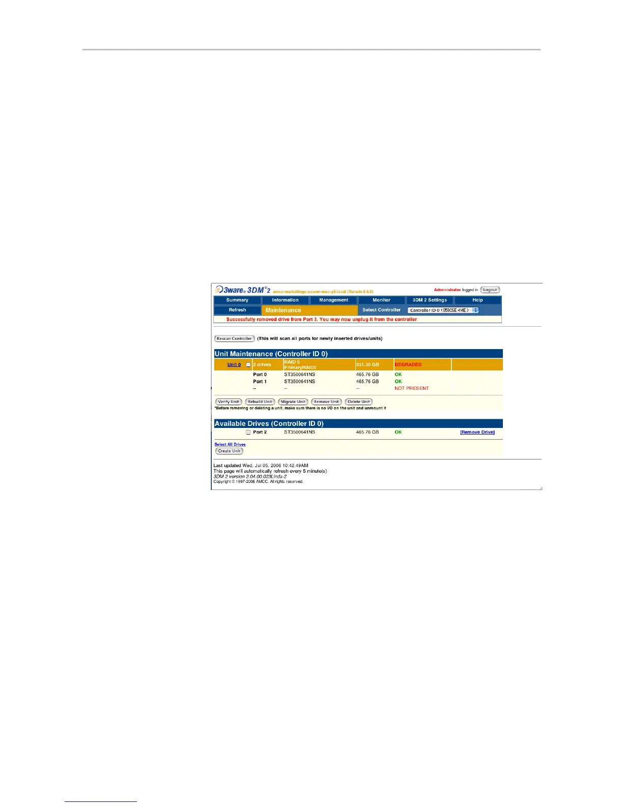 Figure 60. Result of Removing Drive from Unit in 3DM