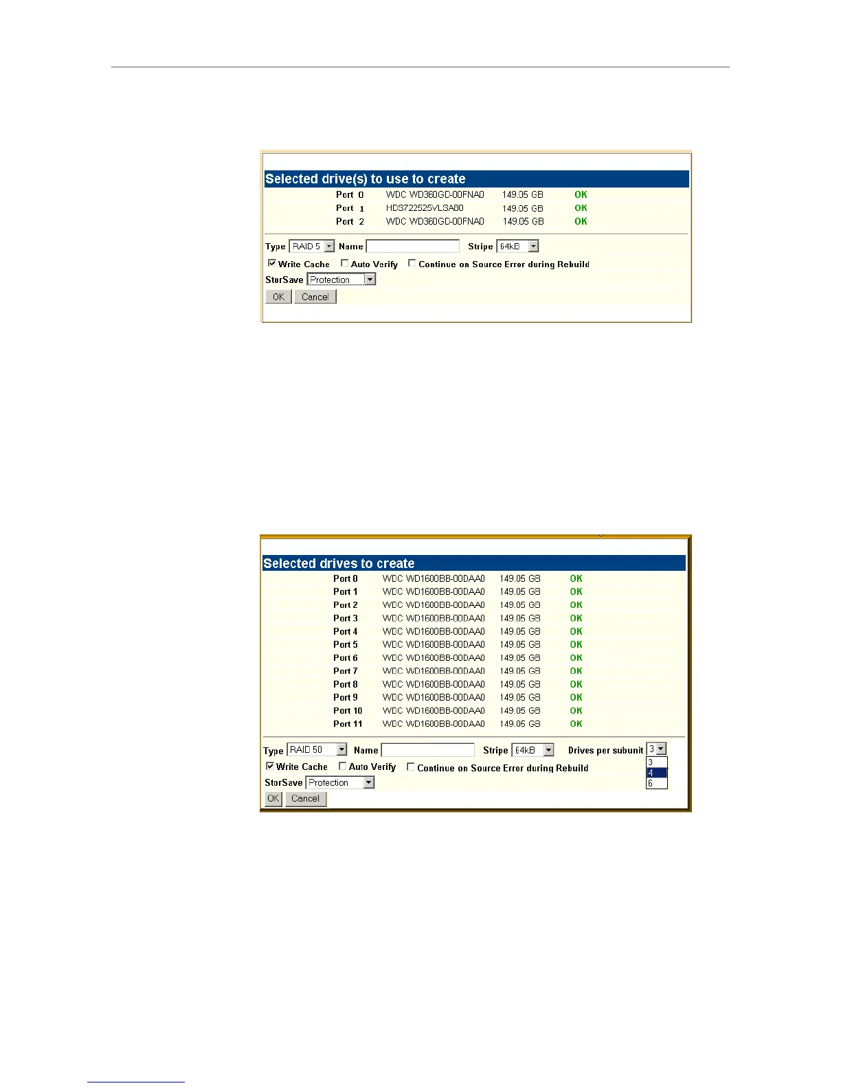 Type. The drop-down list lists the possible RAID configurations for the drives