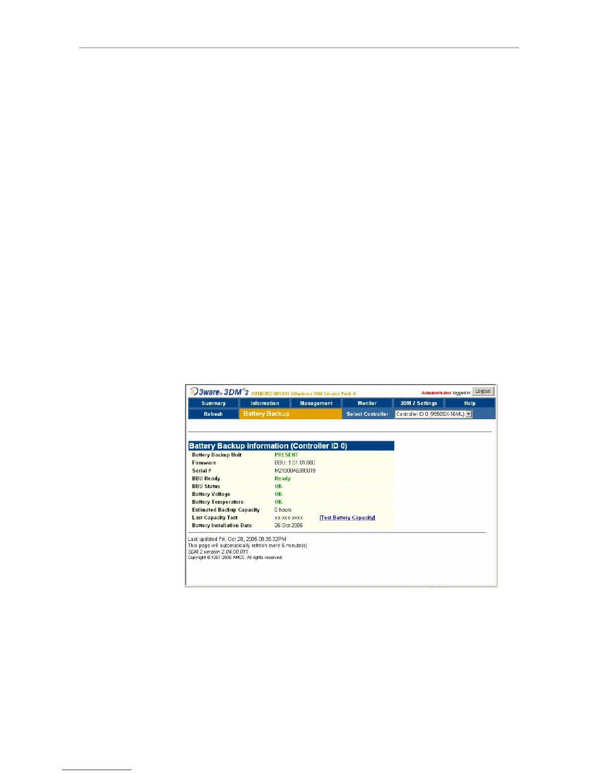 The Battery Backup page appears when you choose Monitor > Battery