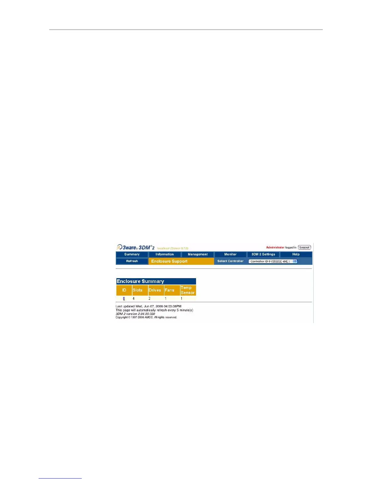 ID. The ID that the 3ware firmware assigns to the enclosure.