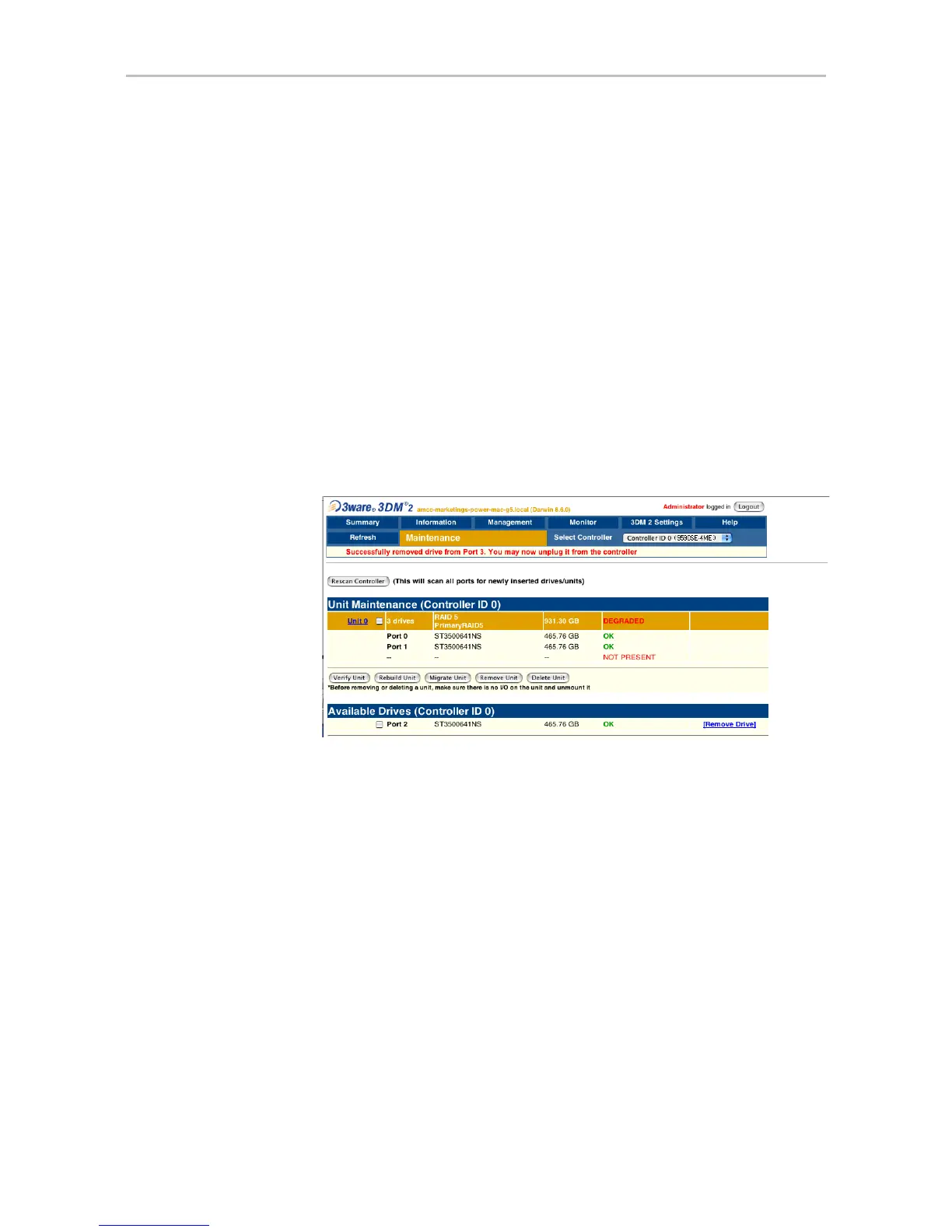 Figure 57. Result of Removing Drive from Unit in 3DM
