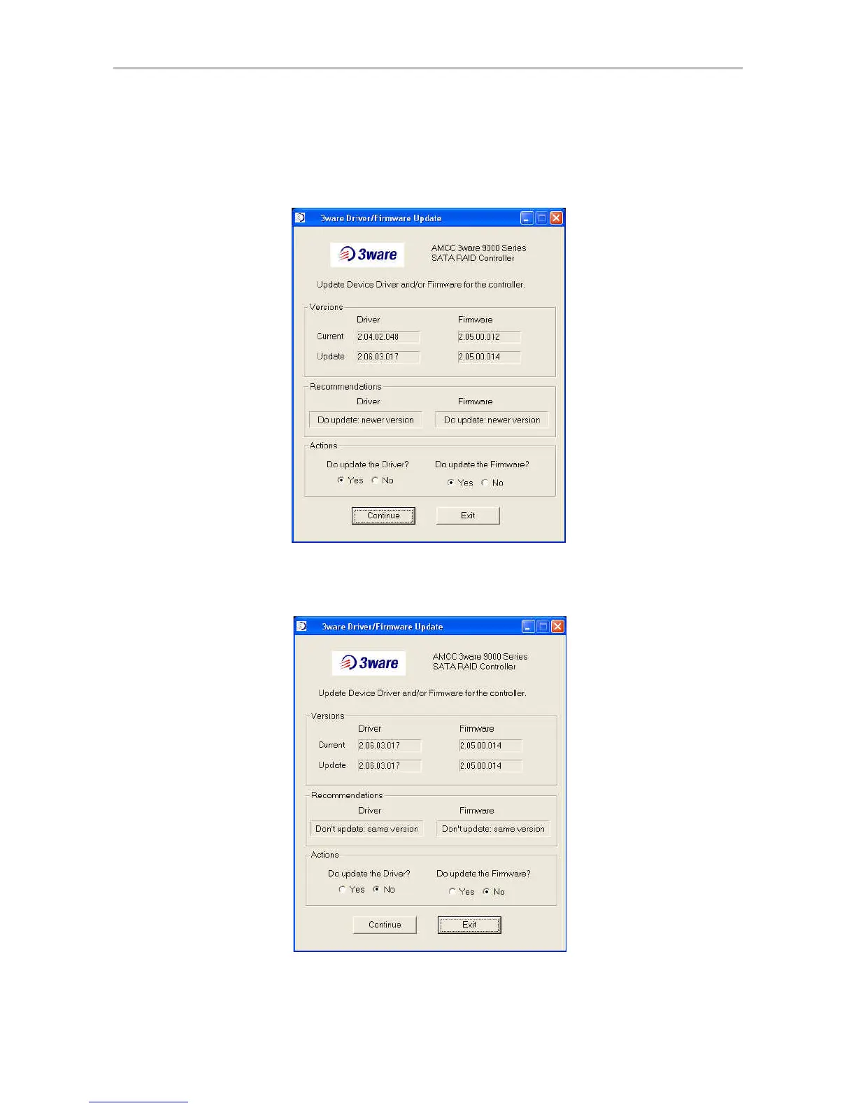 When the 3ware Driver/Firmware Update dialog box appears, it shows
