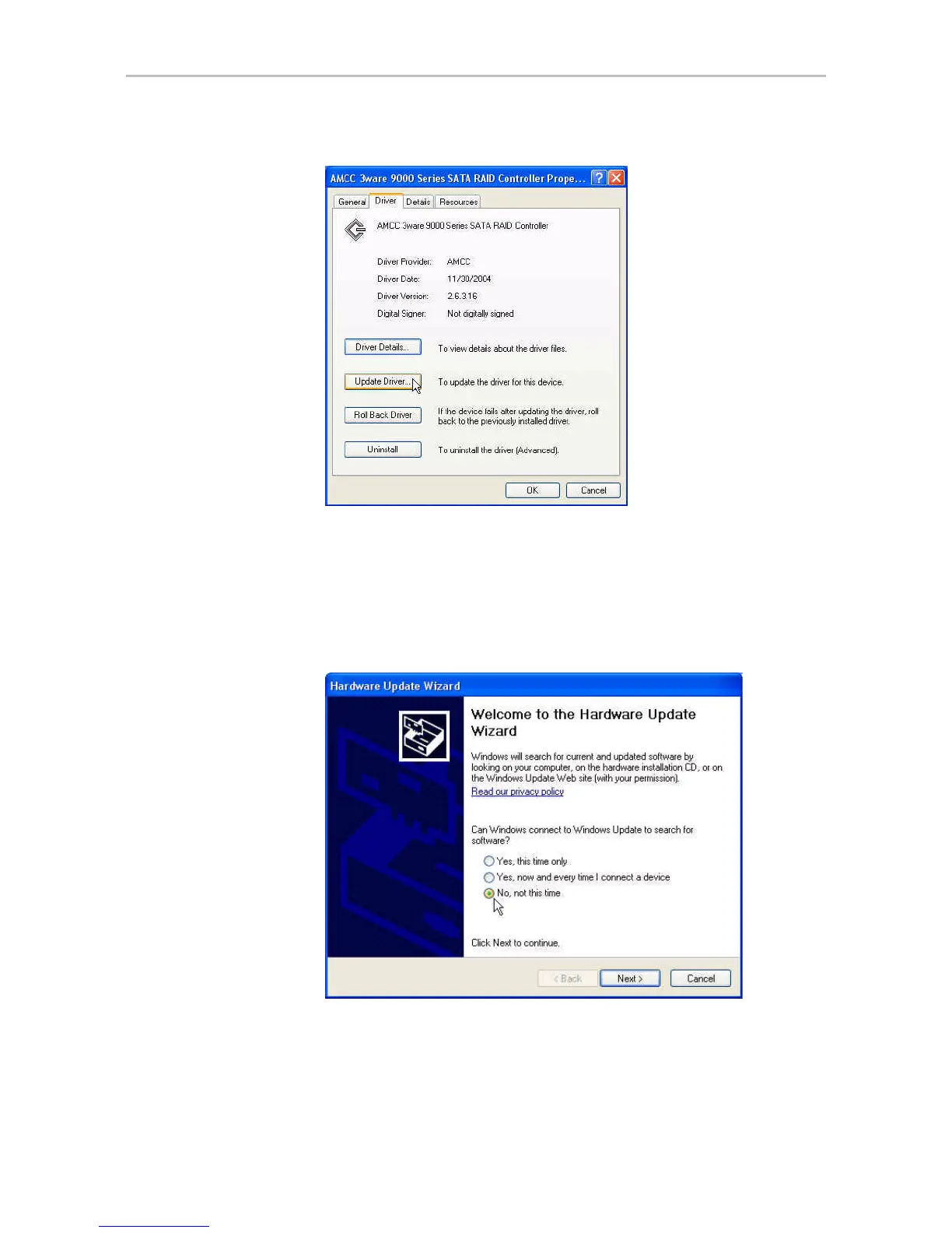 12 When you reach the Hardware Update Wizard screen shown below,