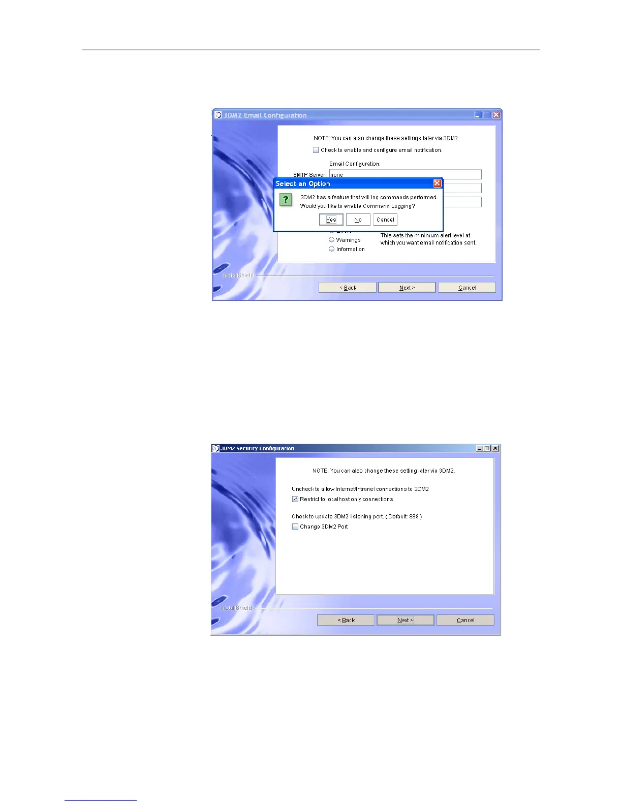 9 [Optional] On the 3DM 2 Security Configuration screen, specify whether