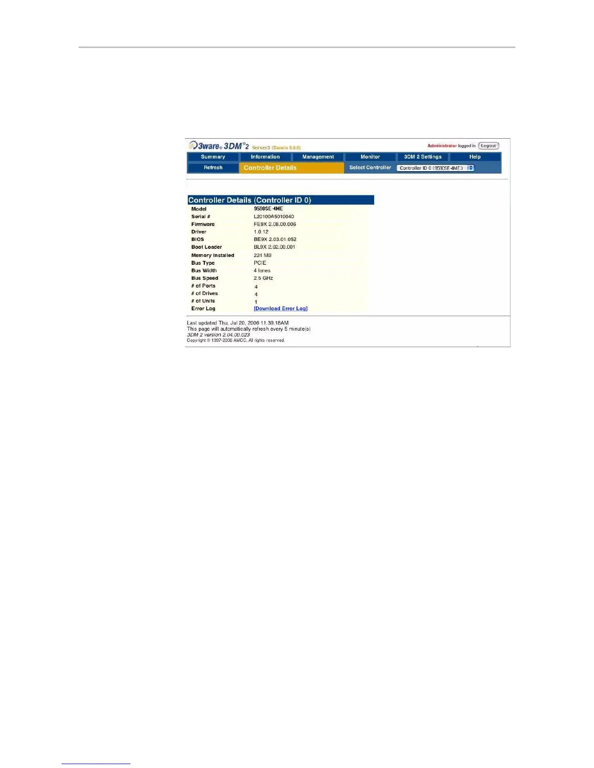3Ware 9650SE-8LPML - Controller Details Page