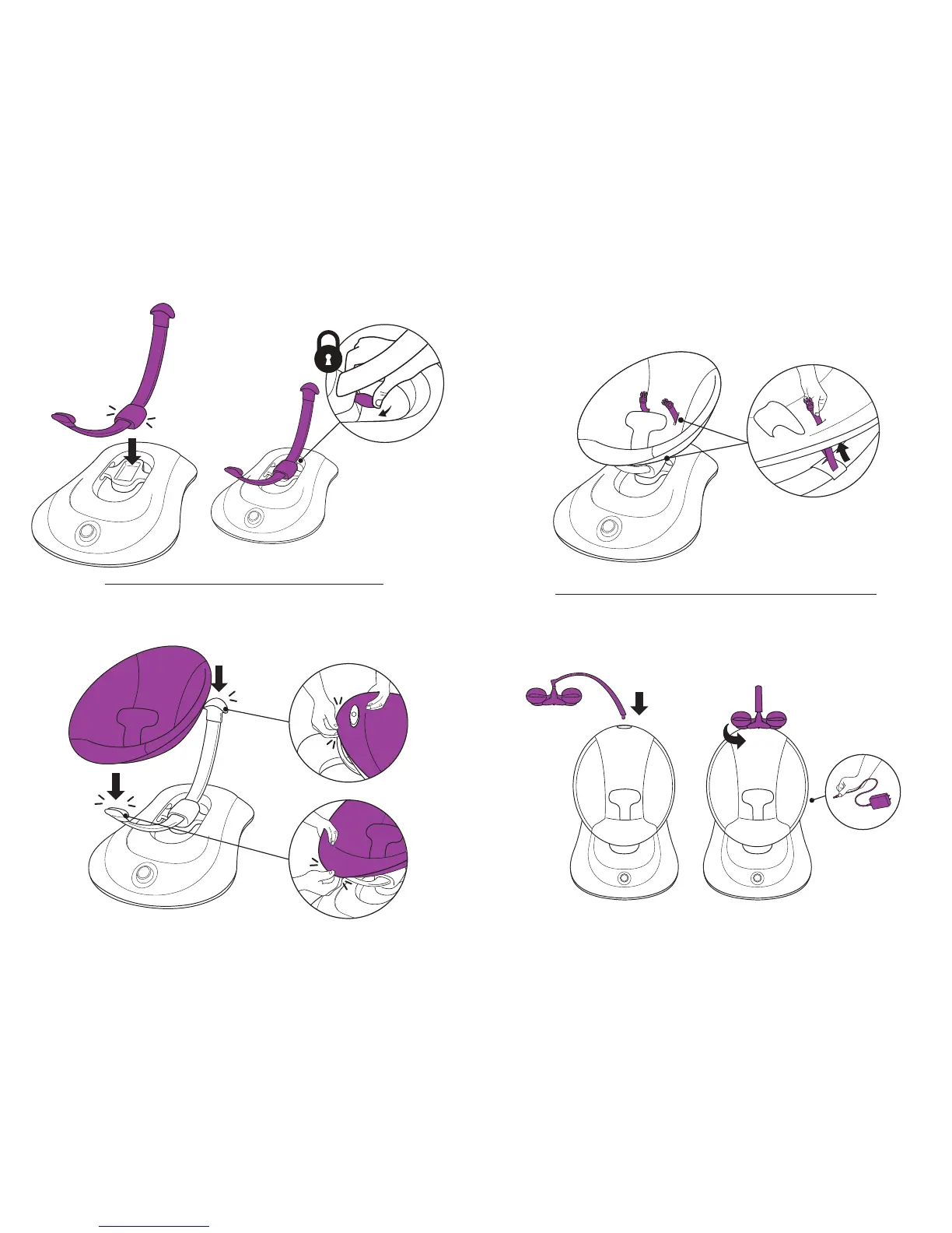 4 Moms rockaRoo - Assembly Instructions; Step 1: Connect Seat to Base; Step 2: Attach Toy Bar; Step 3: Adjust Child Restraints
