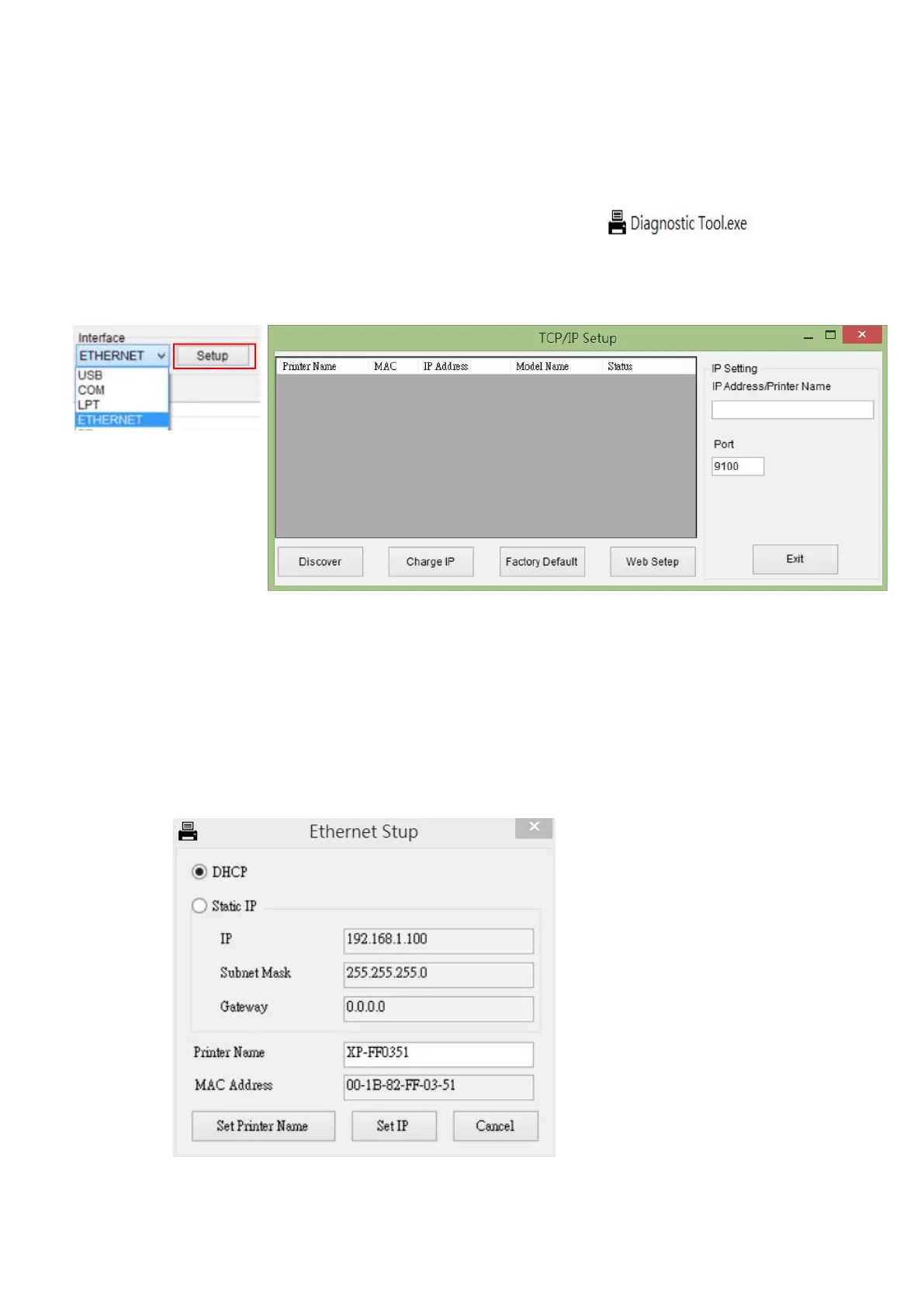 4. Select “Ethernet” as the interface then click on the “Setup” button to setup the IP