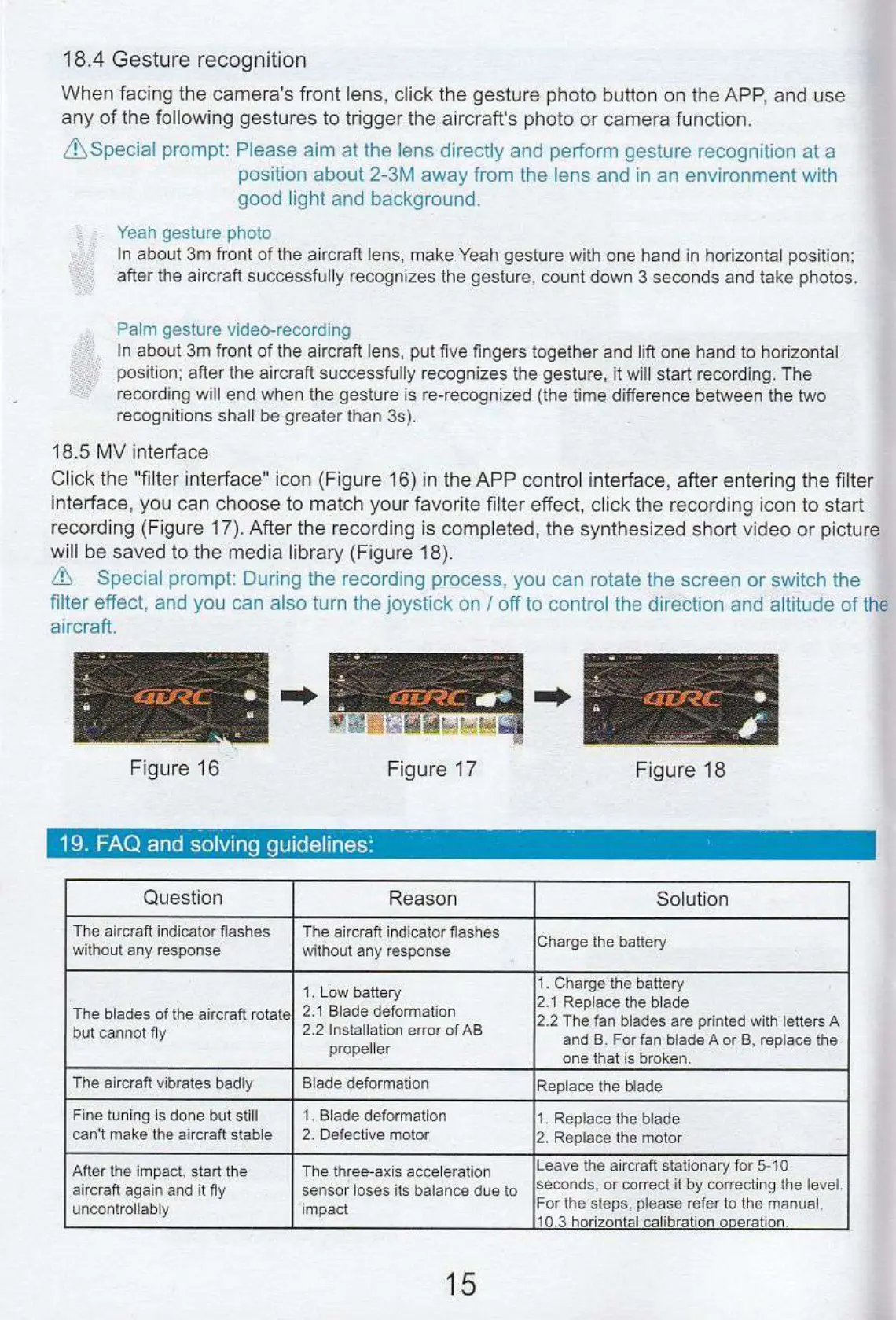any of the following gestures to trigger the aircraft's photo or camera function.