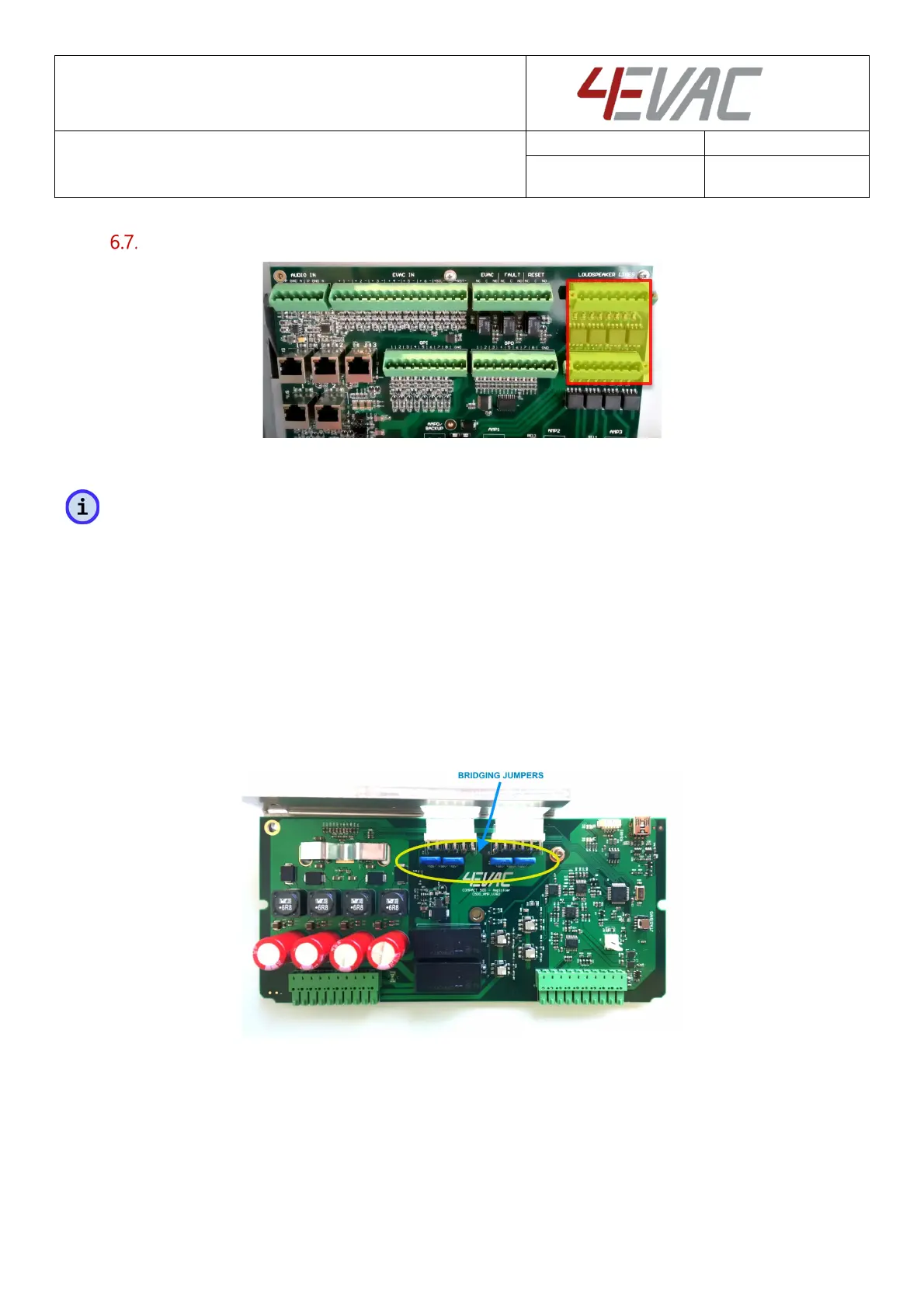 voltage jumpers (bridging jumpers) and connecting two 50V output lines in series, at the loudspeaker line