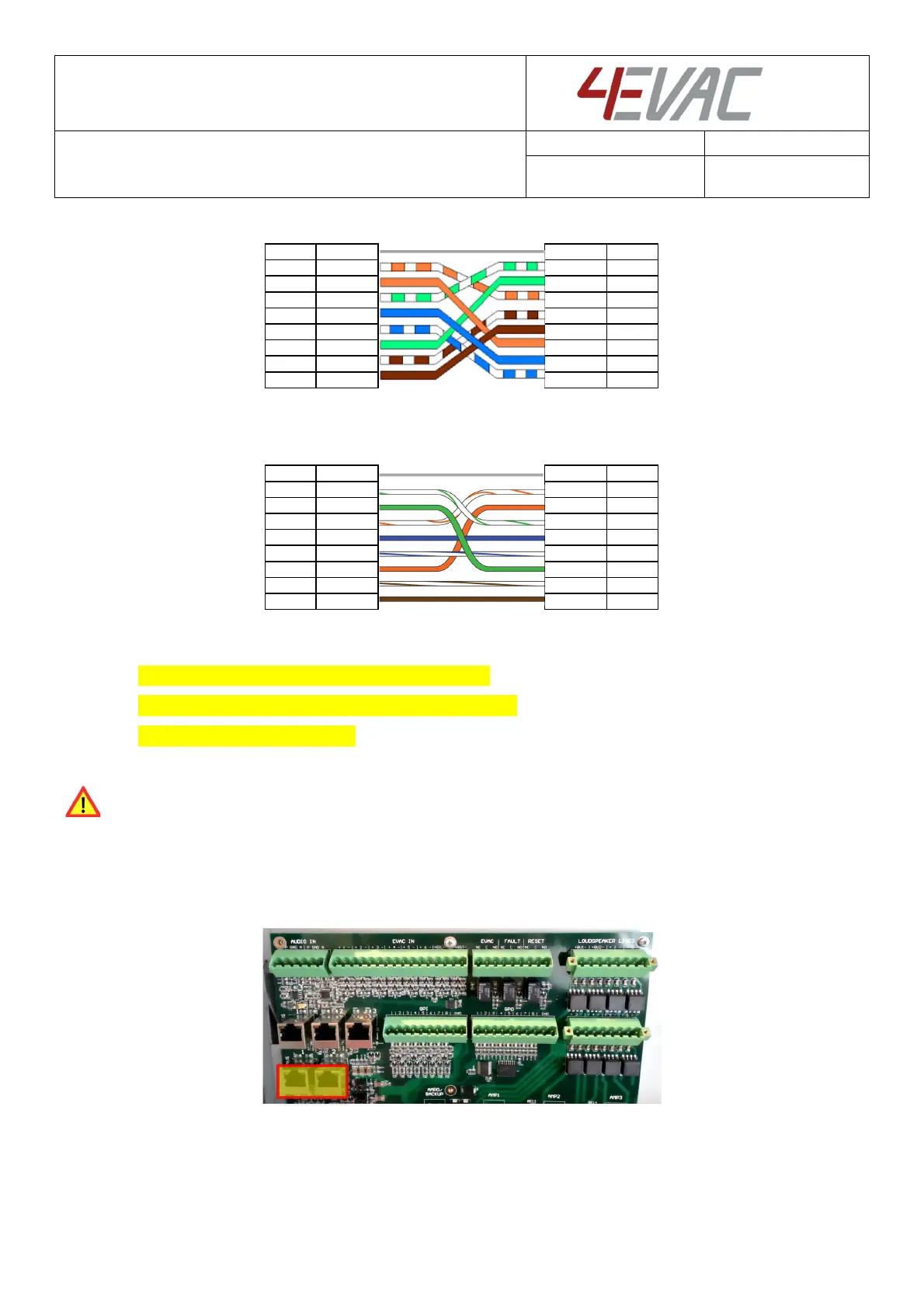 Caution! Use only crossover cables and keep the correct pinout! Connecting power pins to data pins will